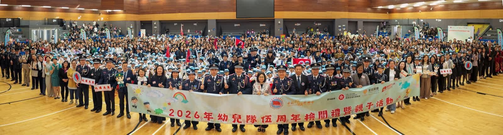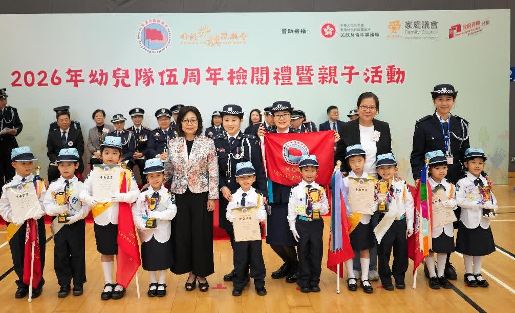 香港升旗隊總會於今日(17日)主辦「2026年幼兒隊伍周年檢閱禮暨親子活動」,活動完滿成功,總共1,400多名幼兒隊員、家長、教師及嘉賓參與,場面熱鬧且富教育意義。是次活動旨在推動愛國主義教育活動的落實並結合家校力量的參與,共同推動幼兒國民教育,將愛國主義精神從小扎根於下一代的心中。