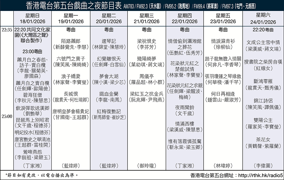 香港電台第五台戲曲之夜節目表
