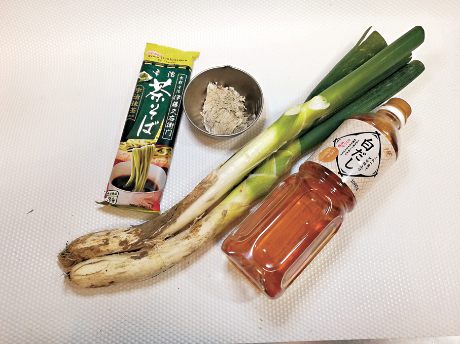 蕎麥麵100克、大葱80克、油1茶匙、細絲昆布30克、白醬油2湯匙