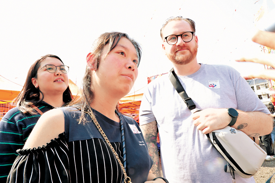 現場人潮眾多,神功戲雖然今晚才開鑼,但她表示單是從外圍看到竹棚的宏偉結構,已讓他們深感震撼,且認為將竹棚建築與美食嘉年華相結合的形式,這類跨界組合能吸引從未接觸過香港傳統文化的人士參與,不僅能一次性感受粵劇、舞獅等傳統項目,還能順便探索香港其他景點,為文化傳承帶來更廣泛的影響力。