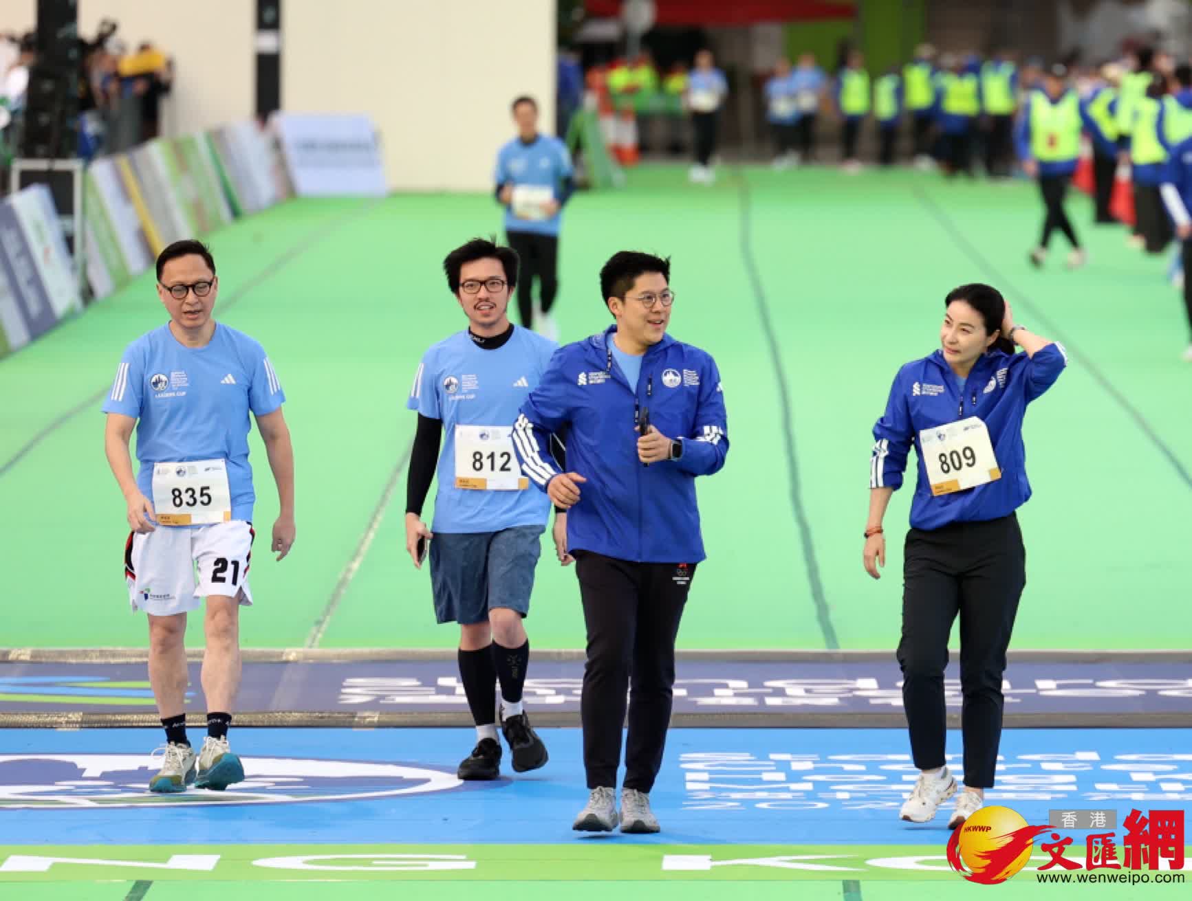渣打馬拉松2026(渣馬)今日(18日)舉行,其中多名政商界人士參與的「領袖盃」在灣仔運動場開步,財政司司長陳茂波到場主禮。