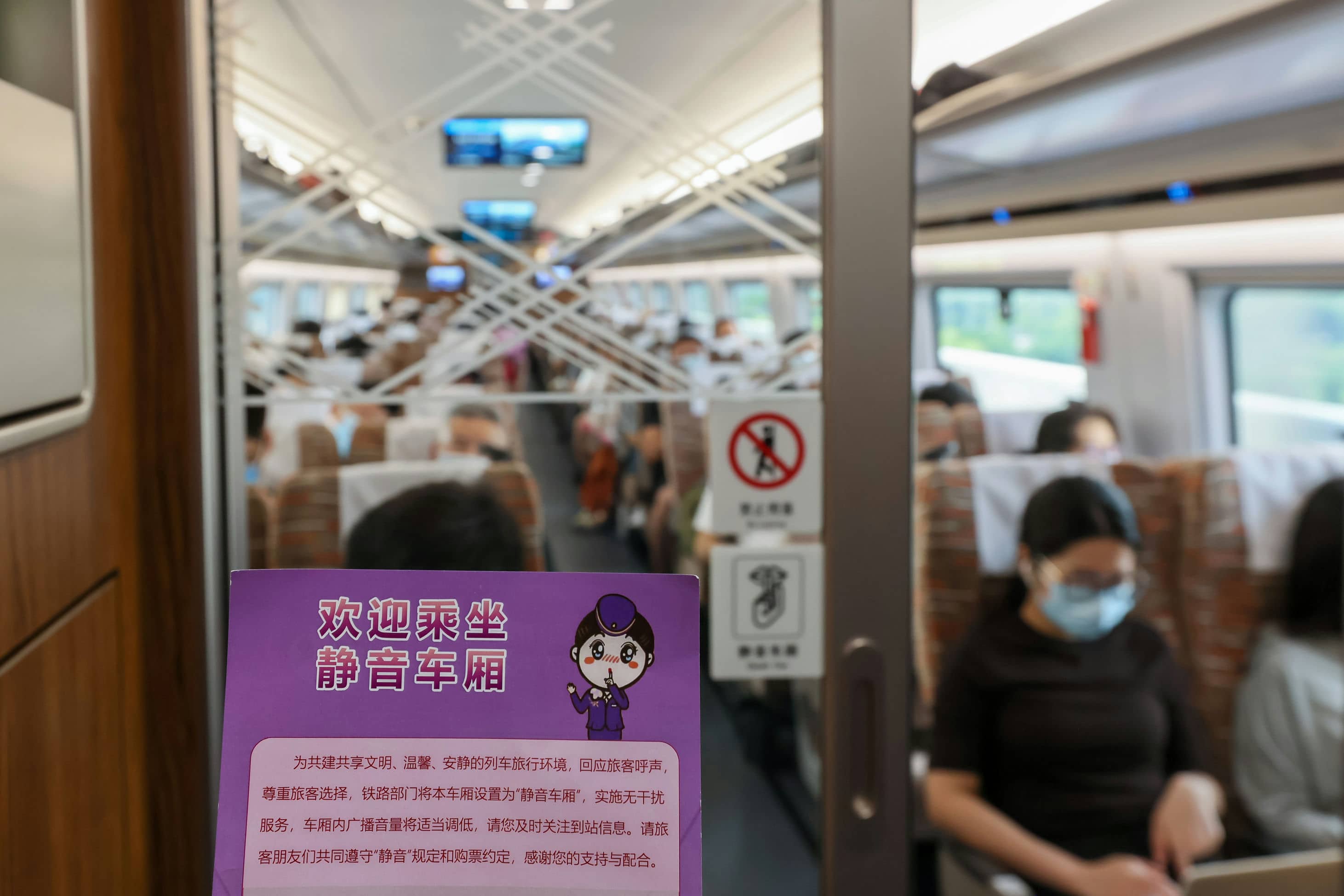 鐵路部門自2020年12月起,在京滬、成渝高鐵試點「靜音車廂」服務,逐步擴展至京廣、鄭渝、京哈、滬昆、西成、貴南高鐵以及內地與香港間開行的跨境高鐵列車,深受廣大旅客青睞。