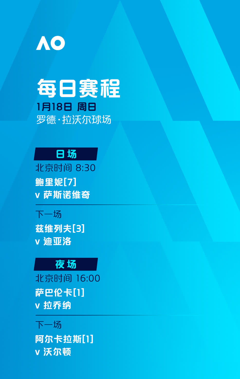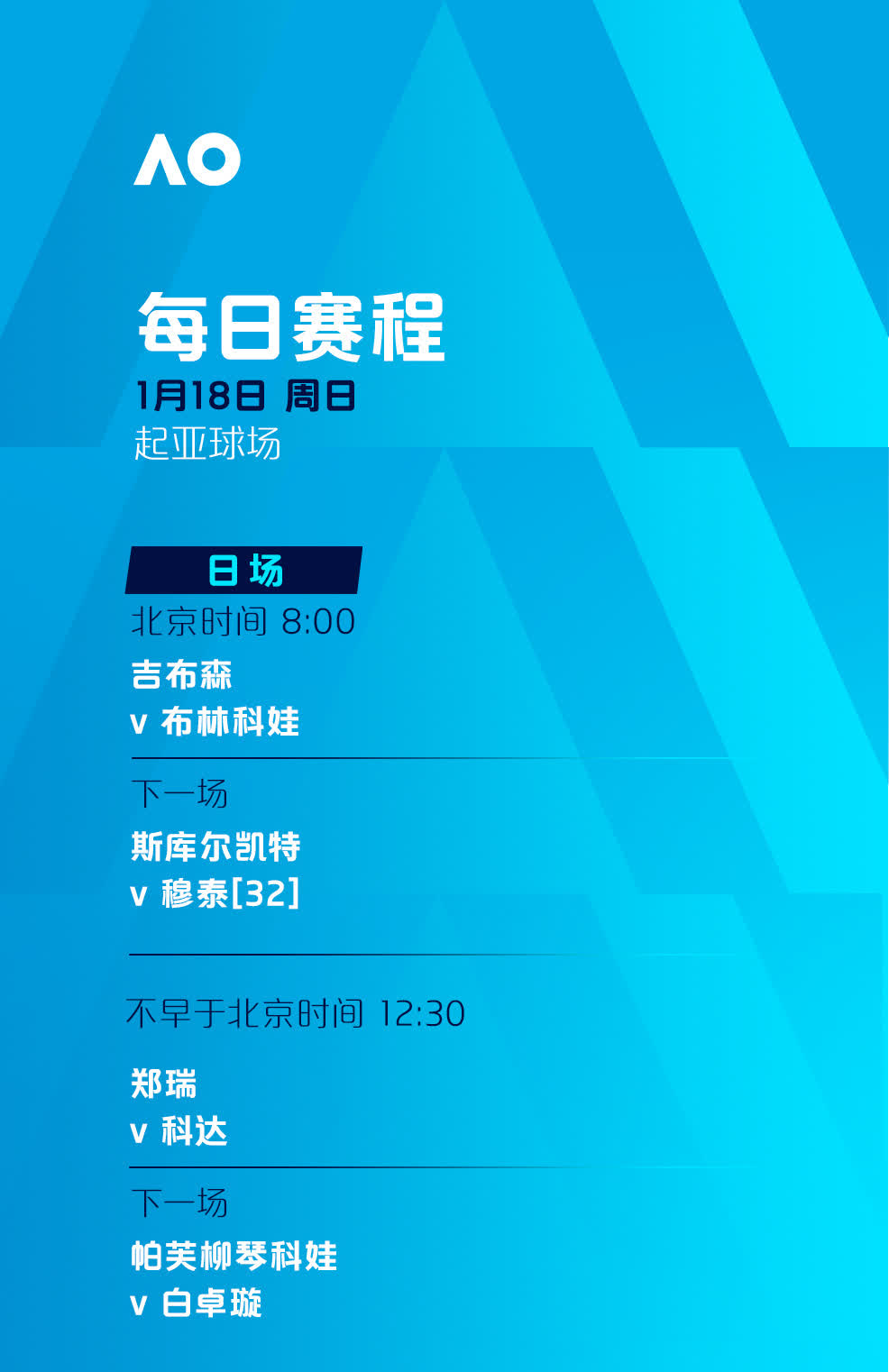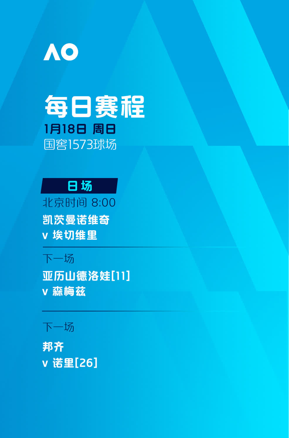 2026年澳大利亞網球公開賽正賽今日(18日)正式開打,賽事將於1月18日至2月1日在墨爾本公園舉行。