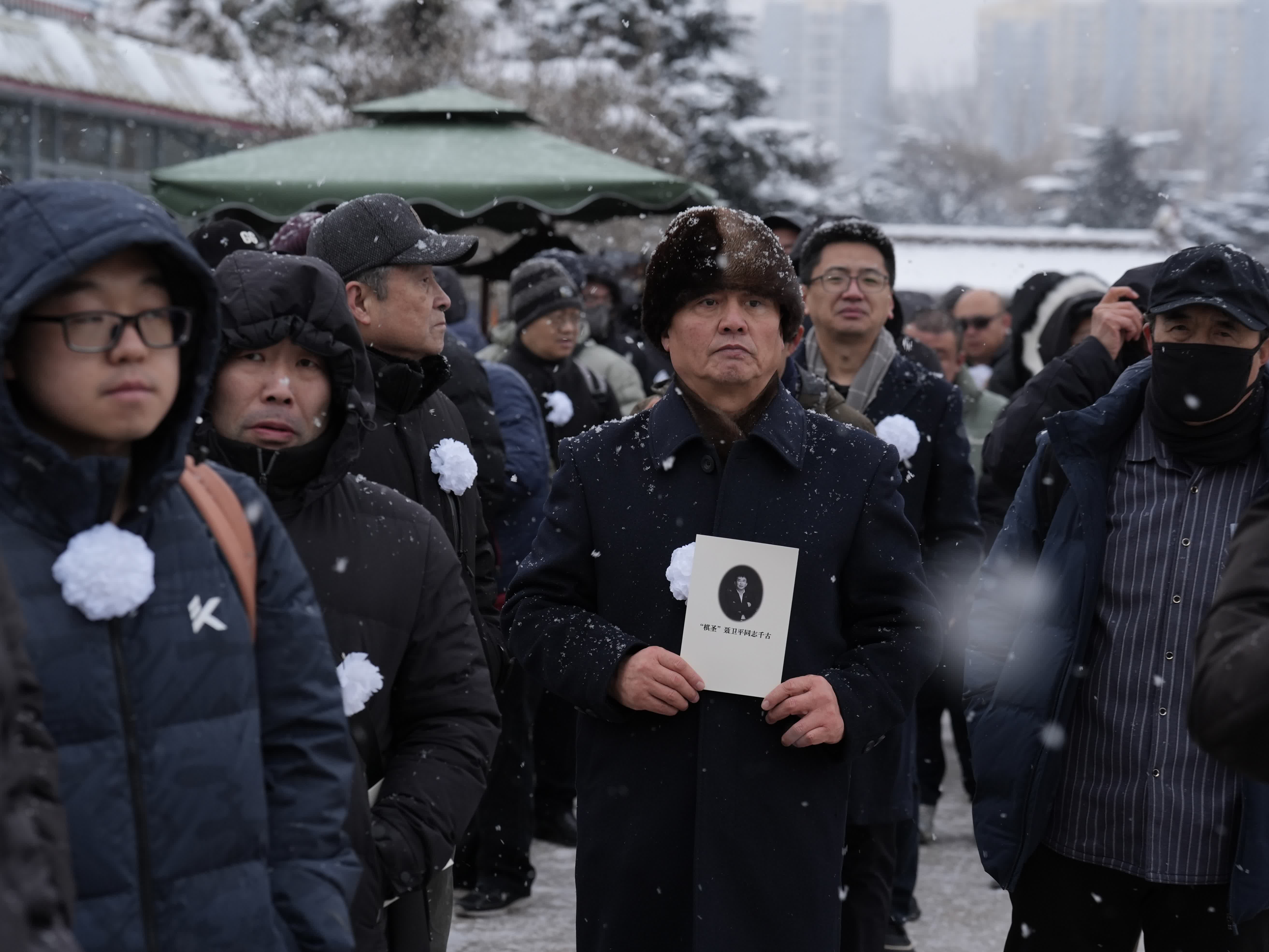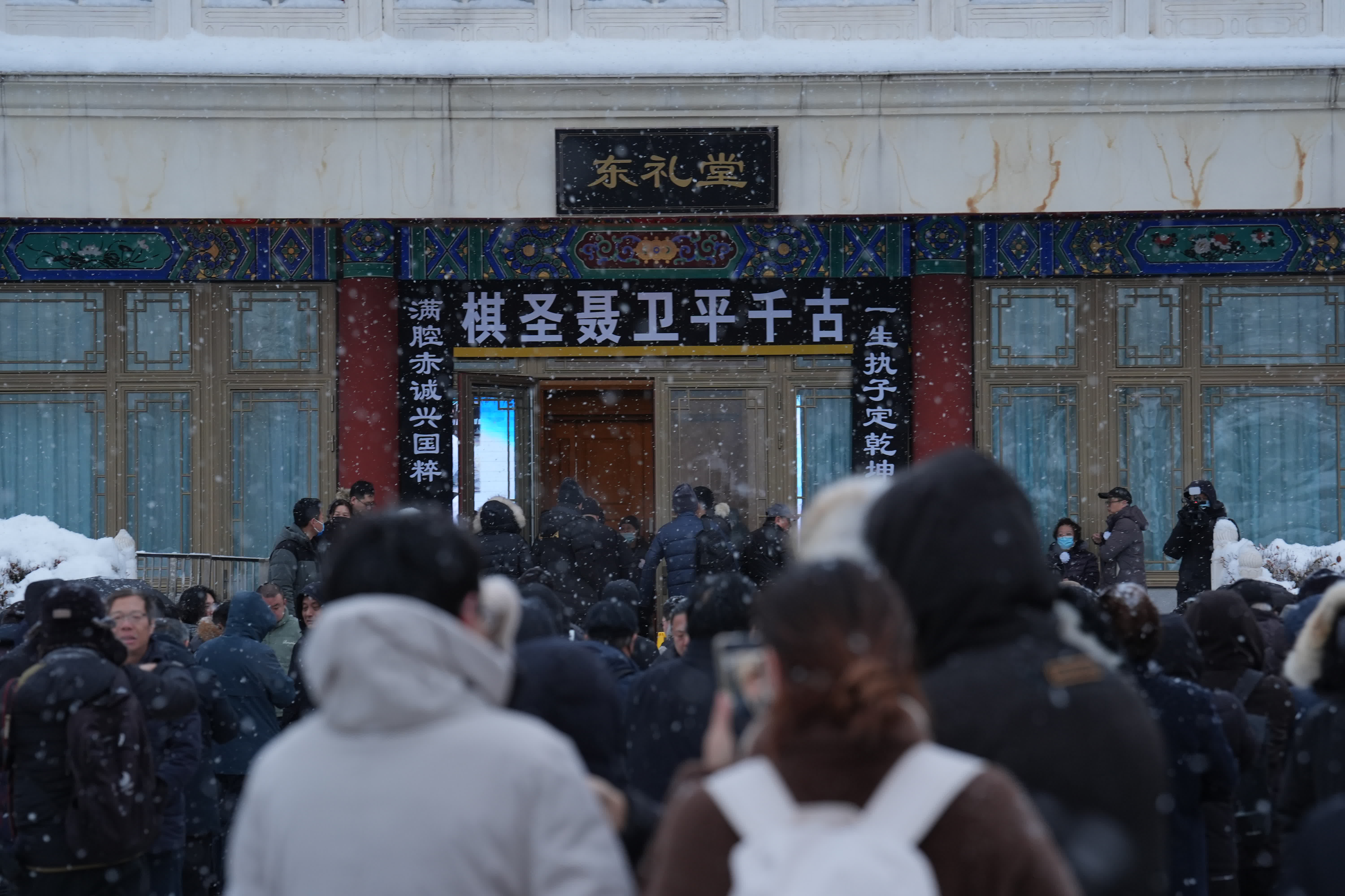 1月18日上午,「棋聖」聶衛平先生的遺體送別儀式在八寶山殯儀館東禮堂舉行。來自體育界等全國各界的同仁摯友,以及眾多自發前來的棋迷,冒雪肅立,送別這位將一生獻給中國圍棋事業的傳奇巨匠。