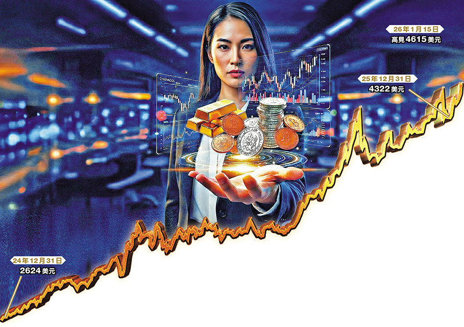 (文:曾業俊)雖然去年12月底金銀價大幅急升後連續5日回吐,但踏入2026年,美國突襲委內瑞拉並強行控制委國總統馬杜羅,加上揚言會軍事干預伊朗,刺激避險情緒升溫,推高金價升穿每盎司4,600美元關口。信誠證券聯席董事張智威接受香港文匯報專訪表示,地緣衝突再起波詭,加上美聯儲換屆及減息等因素,皆令市場相信支持金屬價格上漲的基本因素仍未消退,按大行普遍目標價每盎司5,000美元計,料今年第二、三季金價有望升到5,000美元至5,200美元水平。市民如果也看好金價的,投資門路其實不少,而且豐儉由人,低至1克有交易。