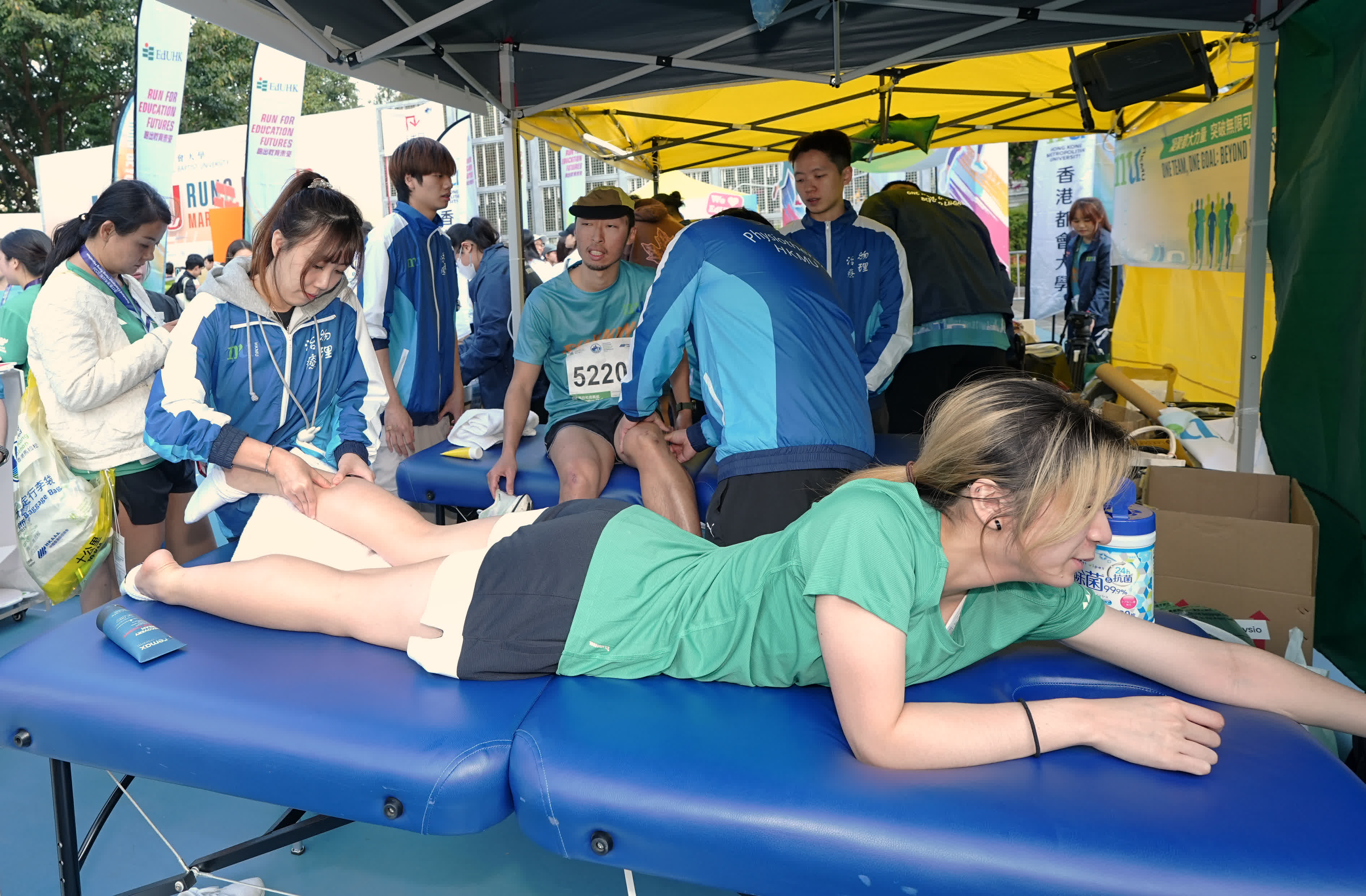 都大亦於維多利亞公園設置攤位,由大學物理治療學系的校友和學生組成的團隊駐場,為都大跑手提供專業治理、賽後恢復及諮詢,亦特設打卡影相位,供一眾健兒於賽後拍照留念。