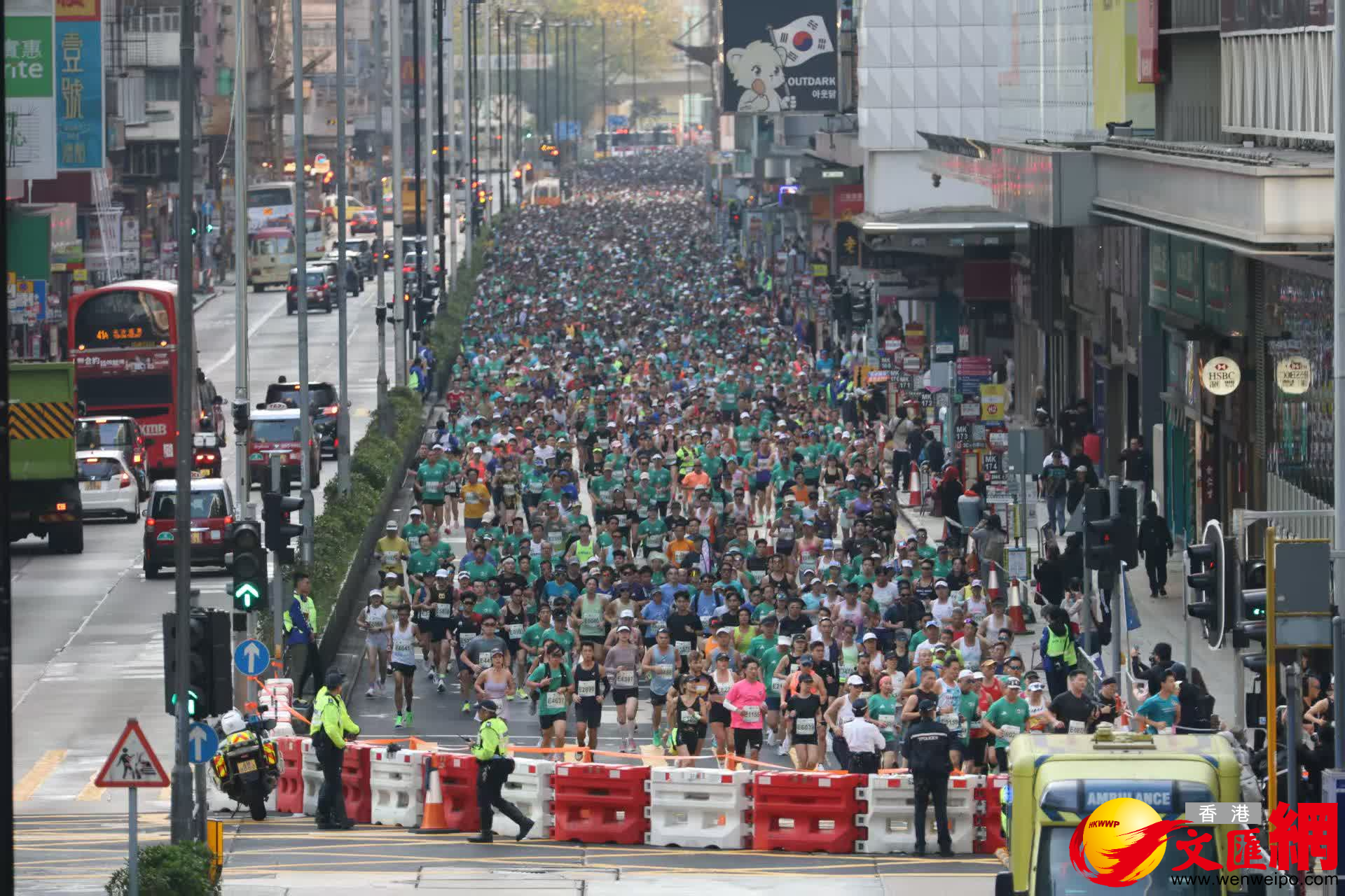 另外,截至早上11時,有1517名跑手接受治療,大部分是輕傷,包括扭傷和肌肉抽筋,不需要送院。另有30位跑手需要送院接受治療,其中3位情況嚴重,需要現場急救。3宗嚴重個案分別發生在10公里東區走廊、崇光百貨門口和西隧出口,需要心肺復甦和AED急救。