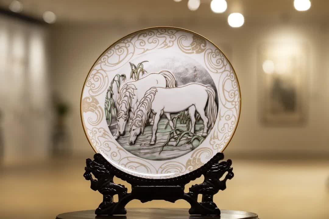 除春碗外,「寶駿迎福大師系列」還包括春盤、春聯等多個品類,其中春盤構思脫胎於王小燕本人的國畫《月色》,以金色線條勾勒出月色下兩匹白馬靜飲溪邊的畫面,傳遞出福貴安康、幸福常伴的美好祝願。整組文創產品覆蓋生活消費多元場景,不僅為即將到來的新春佳節增添了濃厚的文化氛圍,更以國家級文化IP的影響力,激發了文化市場的新活力。