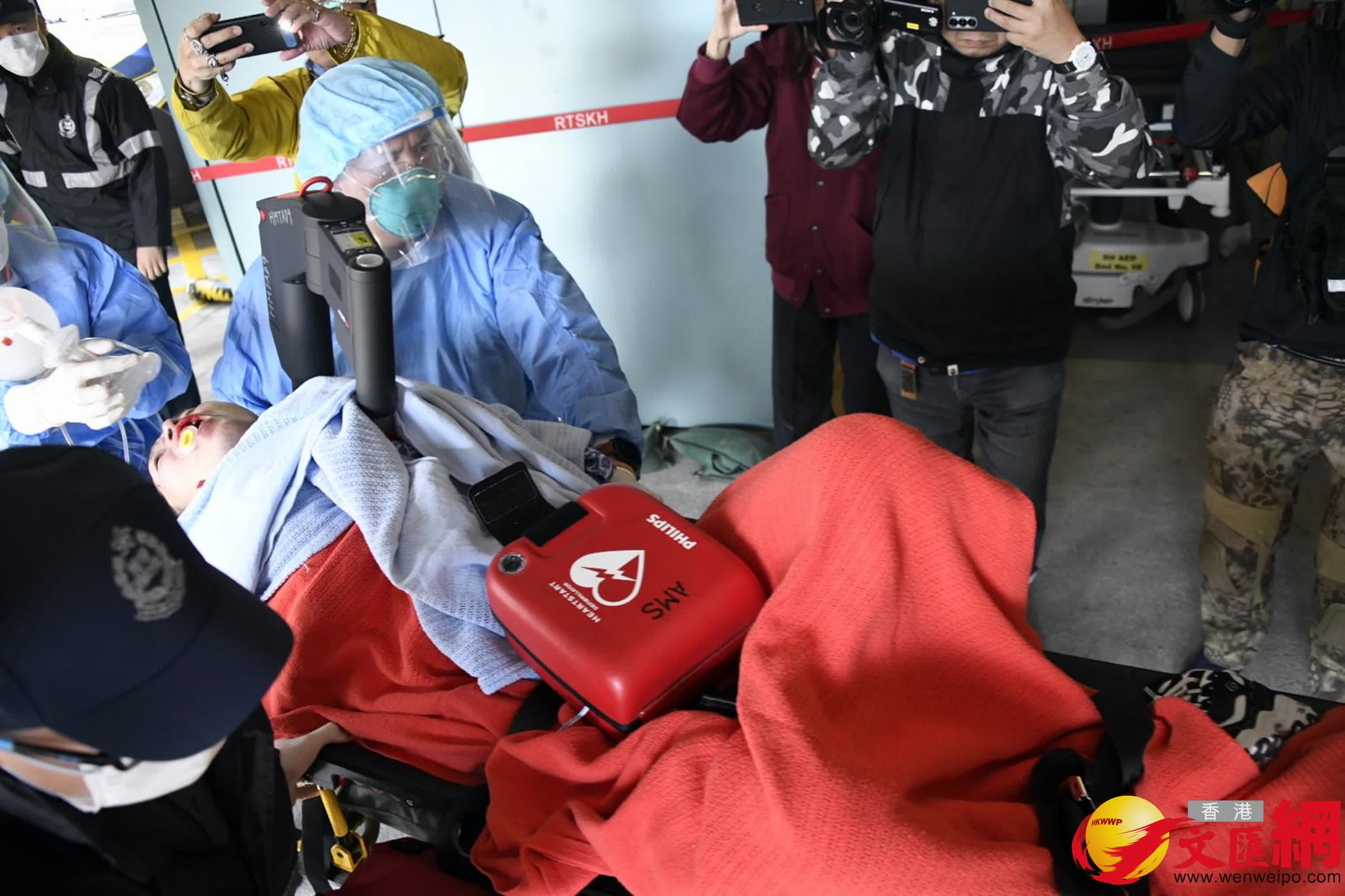 另在西區海底隧道港島出口上斜位,今日早上一名男跑手疑因體力不支突告暈倒地上,救護員立即上前查看,發現他面部擦傷及失去意識,進行心外壓及用自動心臟除顫器(AED)搶救,幸事主其後恢復意識,並可站起身,再由擔架床抬上救護車送院。另有跑手則因跌倒致面部及手部擦傷流血,坐在地上接受救護員即場治理後送院。
