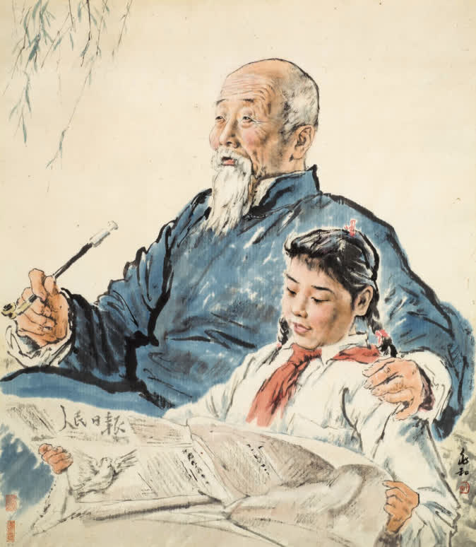 蔣兆和 《給爺爺讀報》 水墨設色 紙本 96cm×83.5cm 1952年