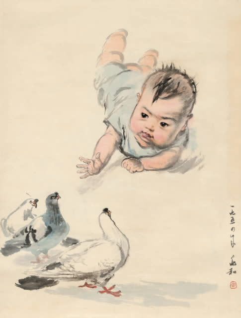 蔣兆和 《小孩與鴿子》 水墨設色 紙本 87.5cm×66cm 1954年