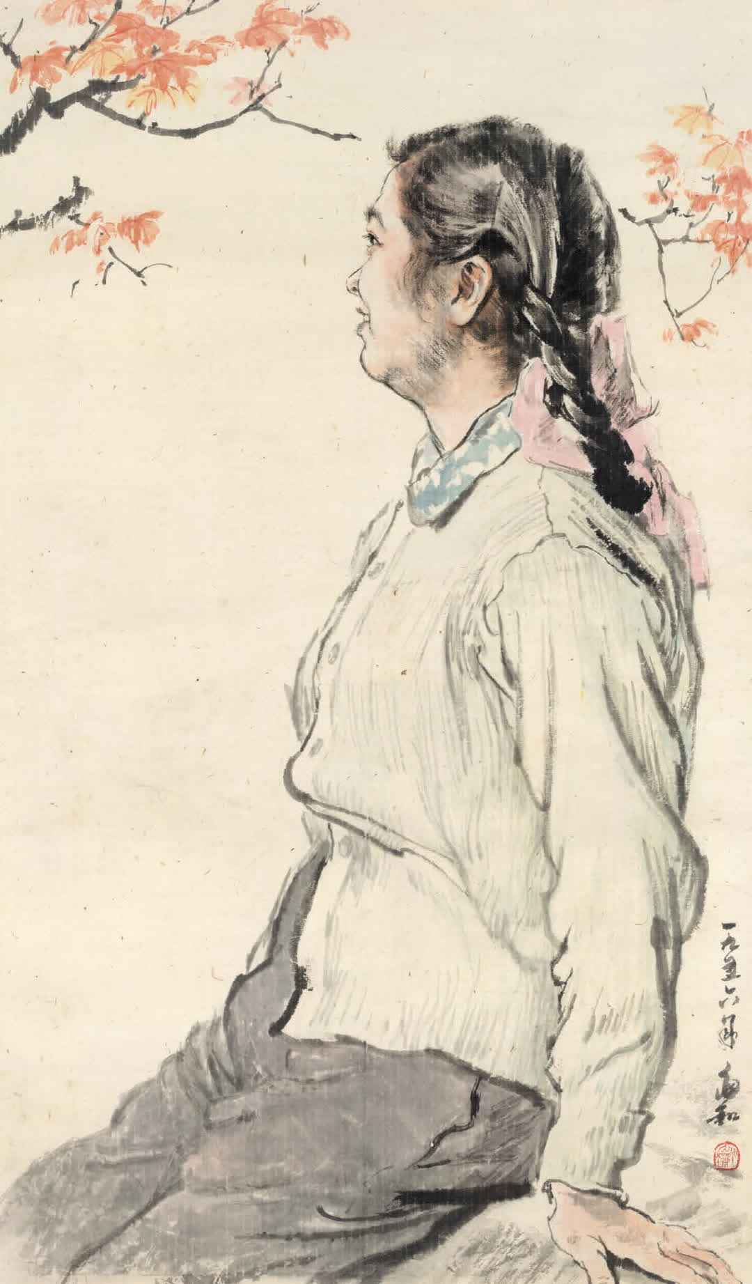 蔣兆和 《女青年》 水墨設色 紙本 90.8cm×53.2cm 1956年