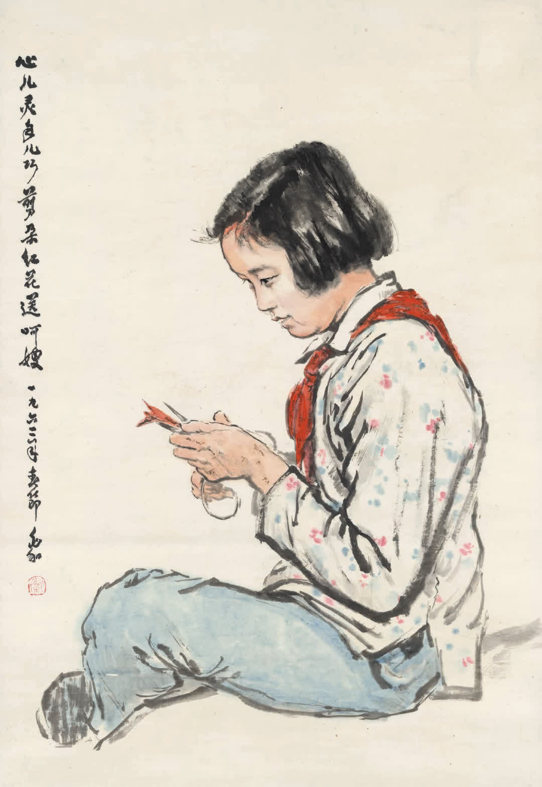 蔣兆和 《心兒靈手兒巧》 水墨設色 紙本 80.8cm×55.5cm 1962年