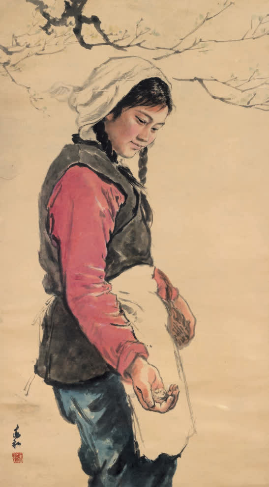 蔣兆和 《養豬姑娘》 水墨設色 紙本 105.5cm×106.5cm 1959年