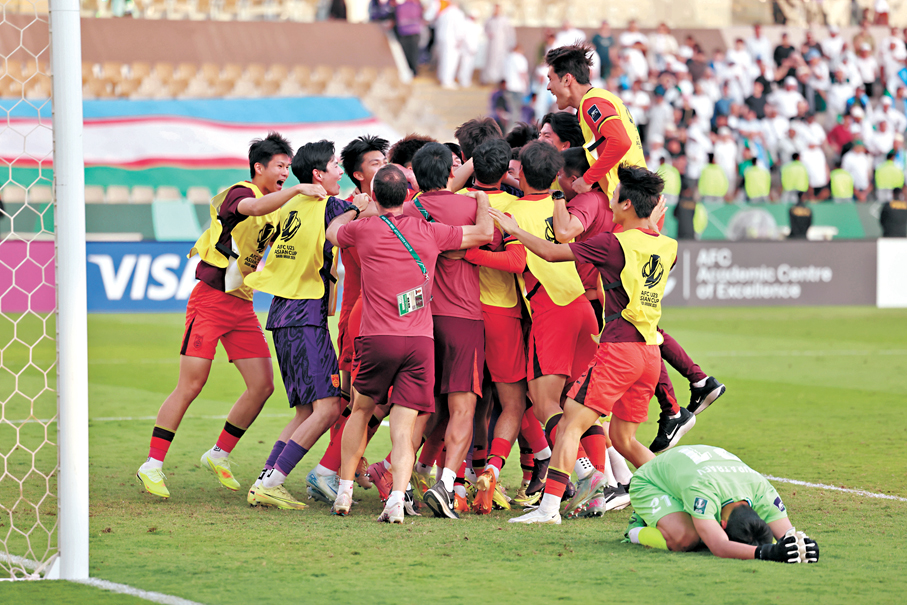 以分組賽一勝二和成績歷史性首次晉級淘汰賽的國足,八強面對牌面上被看高一線的烏茲別克斯坦,全場毫無懼色。數據上,烏茲別克斯坦全場控球率超過70%,並製造出28次射門,當中八次命中目標。然而,面對左飛右撲表現勇猛的國足門將李昊,烏茲別克斯坦始終無法打破悶局,雙方在法定時間連加時120分鐘內踢成0:0平手,要互射12碼分勝負。