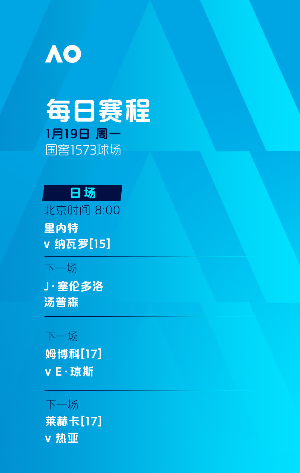 今天,2026年澳大利亞網球公開賽將迎來第二個比賽日。商竣程、袁悅和布雲朝克特三位中國球員將衝擊次輪。