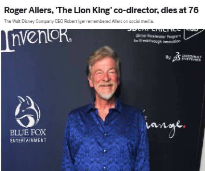 報道介紹,艾勒斯1994年曾與羅伯·明科夫共同執導動畫電影《獅子王》,他還參與了《小美人魚》《美女與野獸》《阿拉丁》等多部迪士尼經典作品。