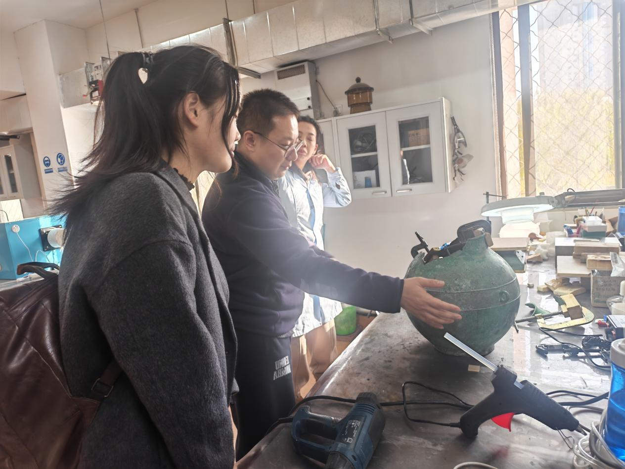 在河南省文物科技保護中心的實習,則讓林怡然的專業認知實現質的飛躍。她系統學習文物檢測分析全流程,從X射線熒光光譜儀檢測器物成分,到顯微鏡觀察鏽蝕結構,再到制定科學修復方案,深刻認識到現代文物修復是「科技賦能+傳統技藝」的融合創新。自此,她錨定「補強弱項、深耕科技修復」的方向,主動研習材料學、化學知識,為深耕青銅器修復築牢基礎。