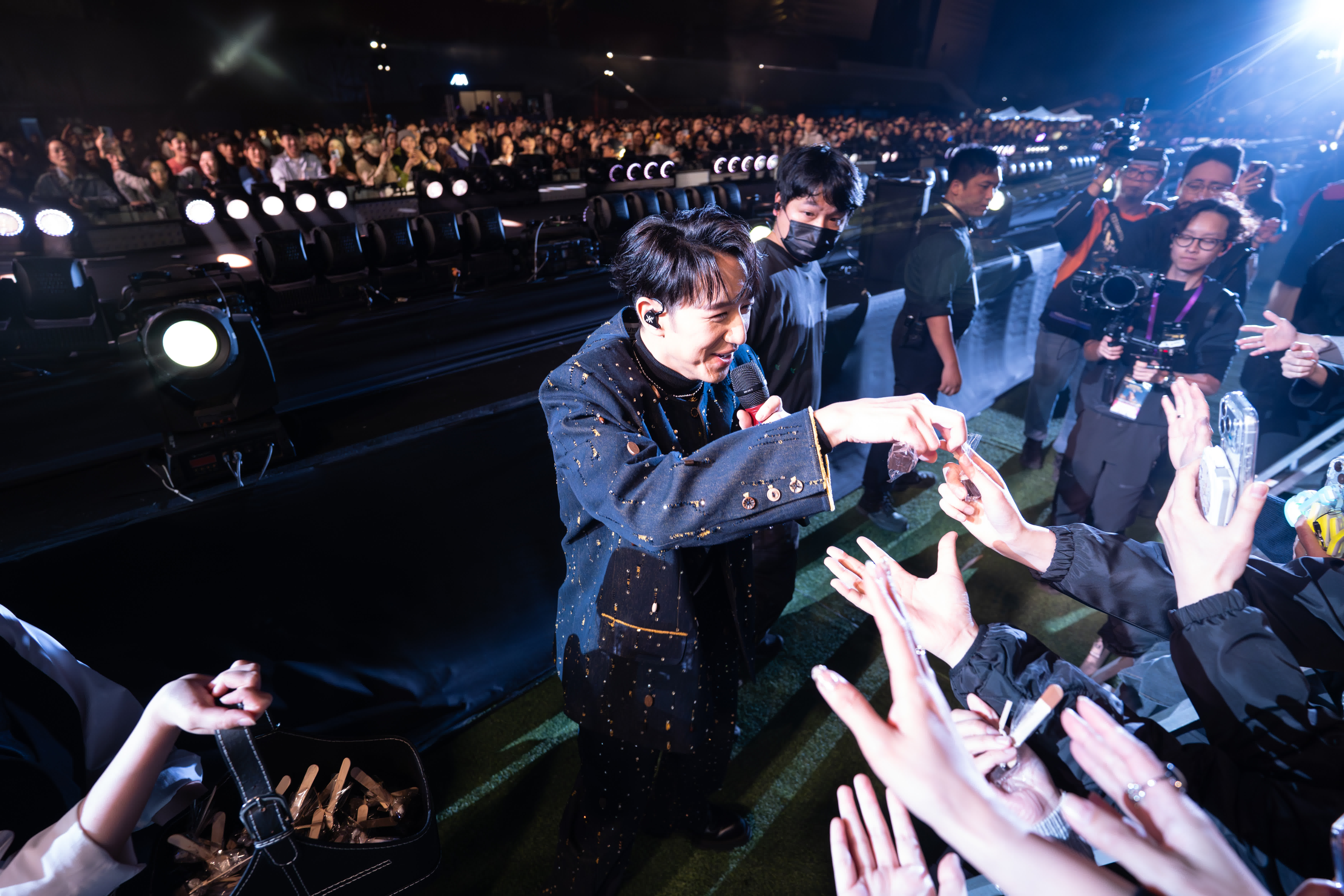 香港文匯報訊(記者 梁靜儀)馮允謙(Jay)於西九文化區舉行一連兩場的「BLUE MOON WANDERLUST 馮允謙演唱會2026」已於昨晚圓滿結束。尾場騷包括寰亞老闆林建岳博士、黃淑蔓、雲浩影、炎明熹、劉沛蘅、T-Ma及林奕匡等圈中人悉數到場支持,場外更有過百粉絲「紮營」聽歌。