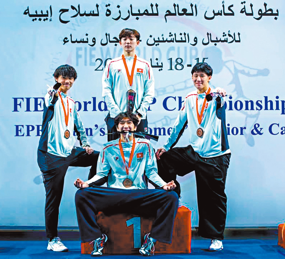 劍擊港隊上周兵分多路征戰青少年世界盃,男子花劍隊遠征西班牙馬德里,何承謙在個人賽先贏得少年組個人賽冠軍,王哲緊接於青年組站上頒獎台,摘下個人賽銅牌。何承謙周日夥拍林浩朗、蔡子樂及劉晉延轉戰青年組團體賽,被列為四號種子的他們首圈輪空後過關斬將,殺入決賽再以45:37勇挫英國,贏得冠軍。
