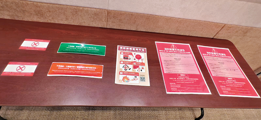 此外,巡查時亦會現場測試火警鐘的鳴響性能、消防泵的啟動狀況是否正常,檢查消防水缸水量等,亦會檢查樓宇是否落實近期消防處兩份通函的內容,即要求註冊消防裝置承辦商在損壞的消防裝置當眼位置張貼告示,以及在消防裝置電源開關貼上封條等。同時,巡查人員亦會在大廈張貼消防喉轆使用方法的貼紙,普及正確的使用方法。