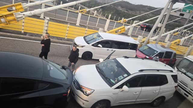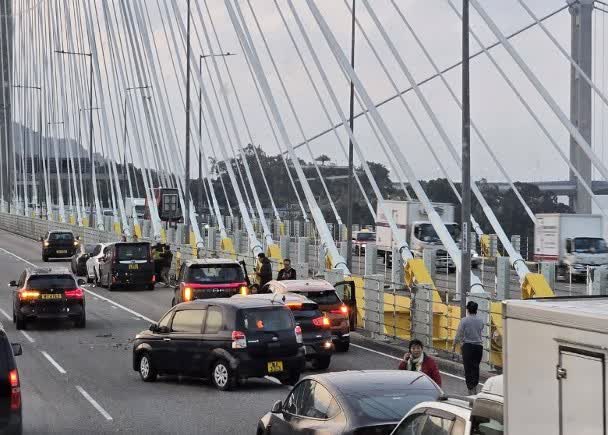 今日(20日)早上7時19分,汀九橋往青衣方向發生交通意外。警方分別接獲3個報案,指涉及的士、私家車及輕型貨車共9部車頭尾相撞,最少一名乘客受傷。