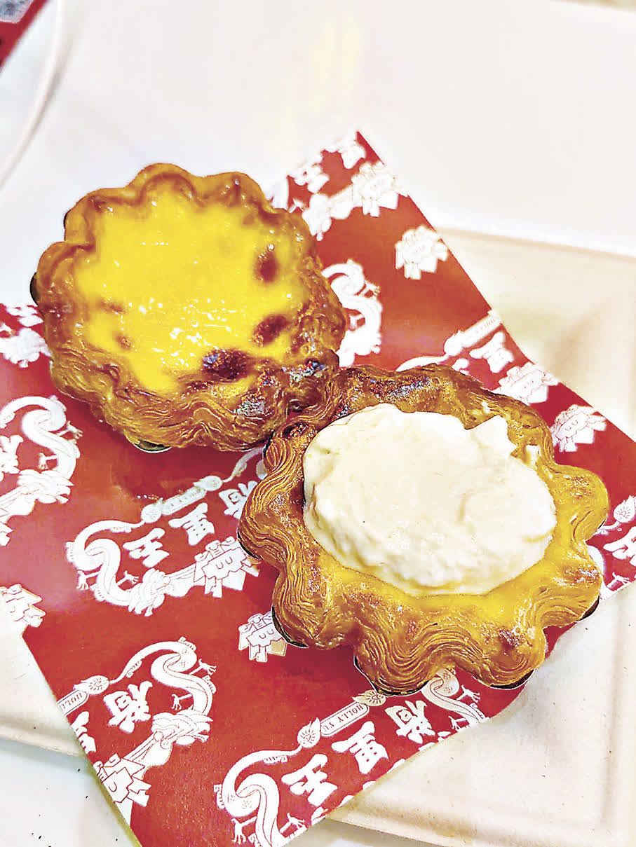 甜食控必試四種口味的花邊葡撻,開心果漏奶撻(15.5元)上有濃郁到快溢出的開心果醬汁,上面撒上開心果碎,滿口香濃堅果味。榴槤愛好者可以根據自己的口味,選擇輕量化的蘇丹王子榴槤葡撻(15.5元)或是加量加價的蘇丹王爺榴槤葡撻(28.8元)。
