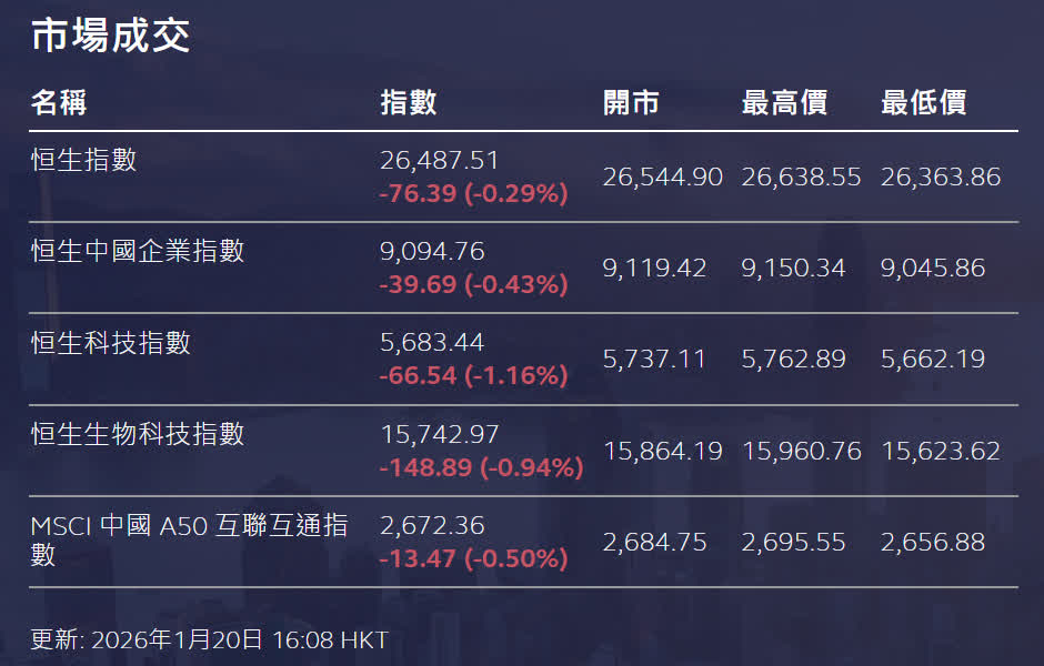 傳統經濟股受捧,部分醫藥股及科技股受壓。藥明康德 (2359)跌4.13%,為全日跌幅最大藍籌股。比亞迪股份(1211)跌3.67%。中芯國際(0981)跌3.25%。
