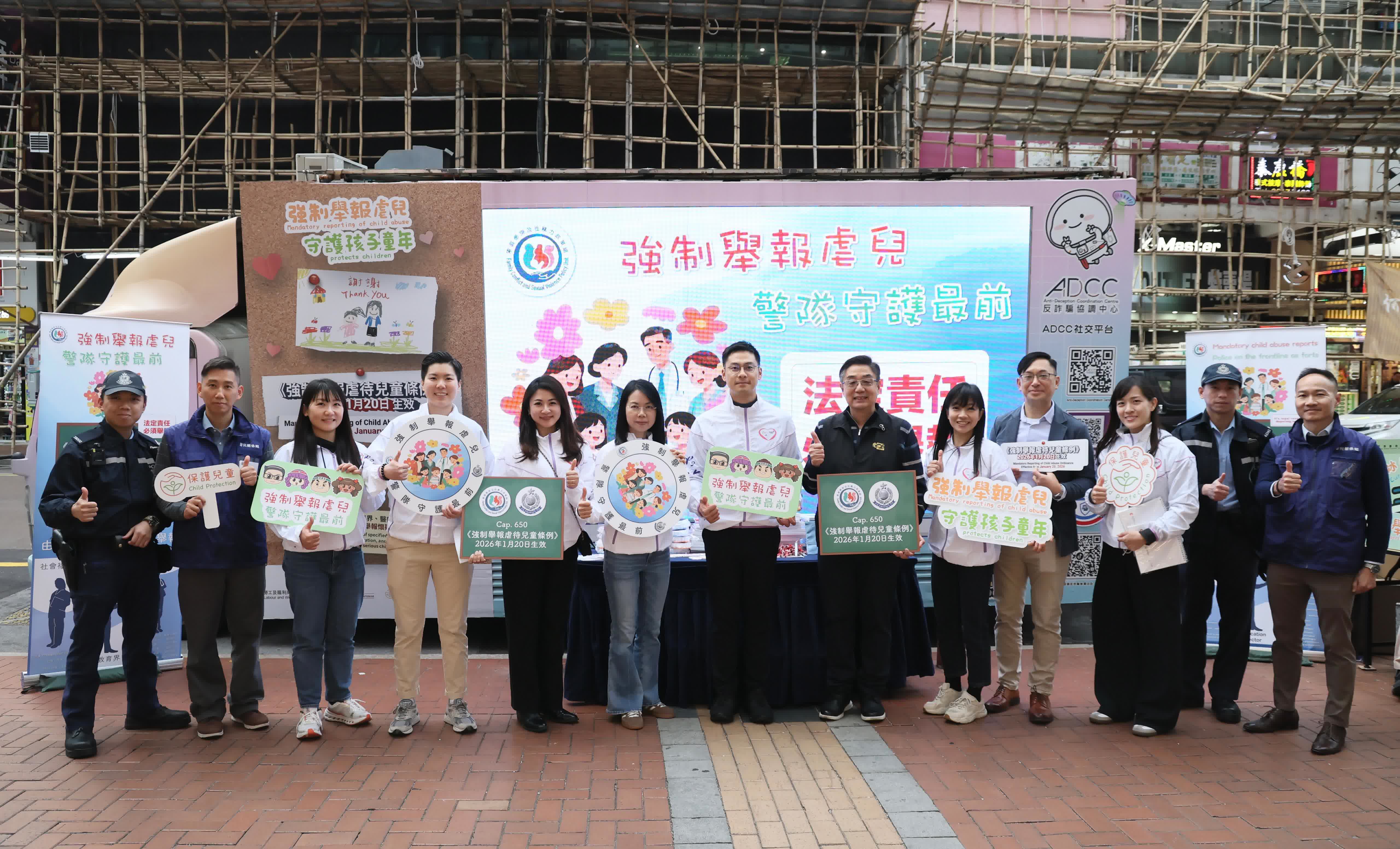 香港文匯報訊(記者 蕭景源)《強制舉報虐待兒童條例》於今日(20日)正式實施。為提高公眾對新法例的認識,警務處家庭衝突及性暴力政策組聯同勞工及福利局於同日安排宣傳車走訪新界北區及荃灣區,展開社區宣傳活動。