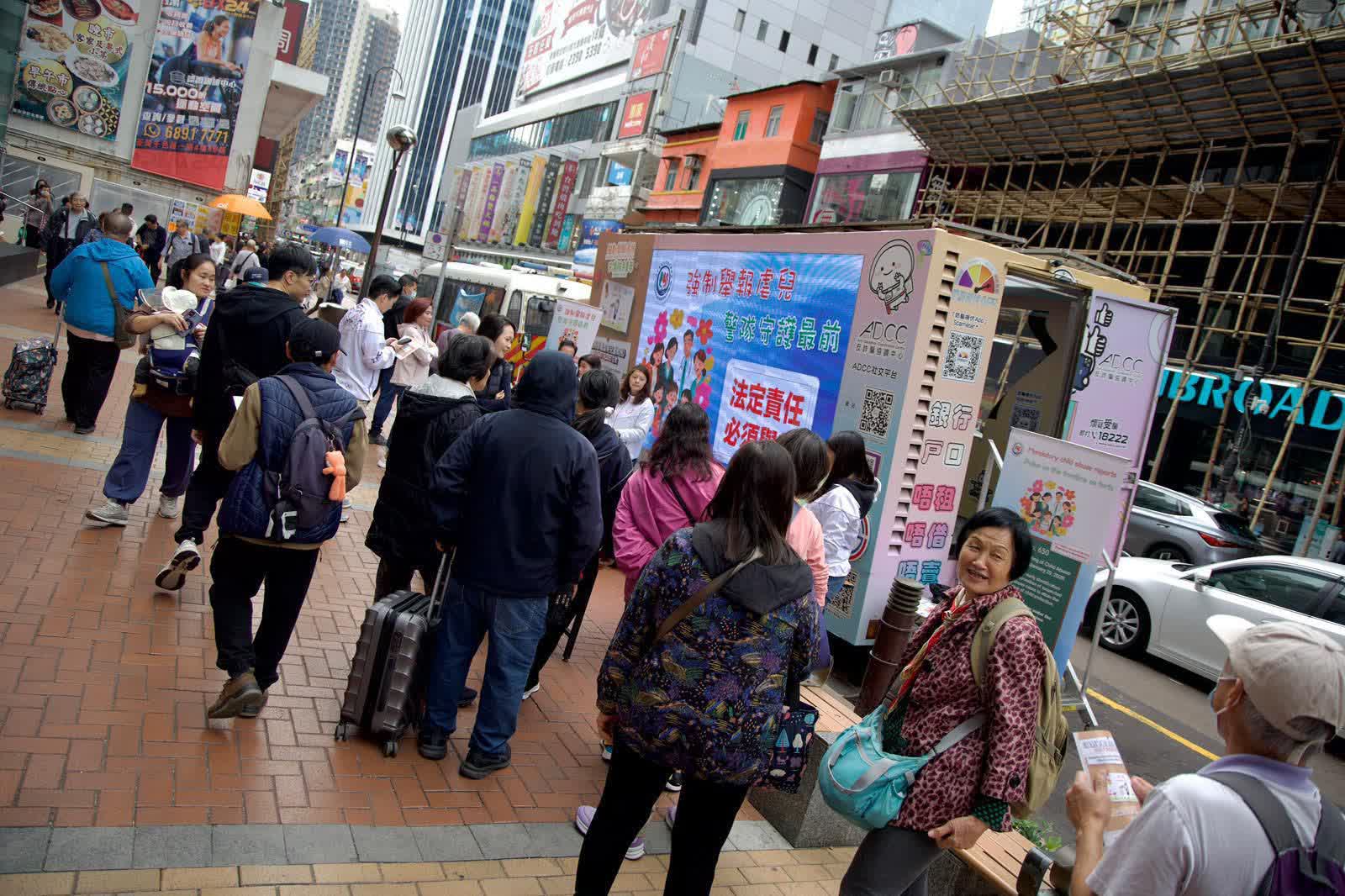 宣傳車上午於粉嶺站與市民會面,下午則移師荃灣千色匯附近繼續活動。宣傳車上設有互動遊戲區,讓市民透過輕鬆形式了解新法例的內容及強制舉報的責任。