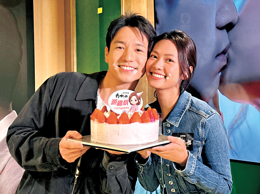 香港文匯報訊(記者 子棠)馬德鐘、賴慰玲、吳偉豪、陳煒、游嘉欣及陳曉華主演的劇集《非常檢控觀》前晚開播,監製林志華親率眾演員飯聚齊齊看首播,還搞驚喜慶生!適逢昨日是游嘉欣26歲正日生辰,眾人起哄要求劇中被游嘉欣「猴擒」的吳偉豪獻吻,場面熱鬧又搞笑!