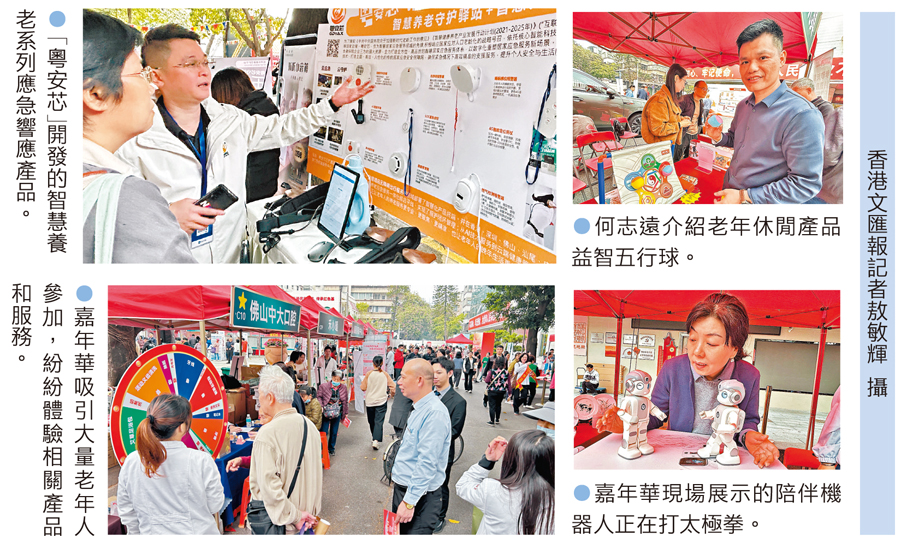 香港文匯報訊(記者 敖敏輝 佛山報道)首屆佛山銀齡消費嘉年華活動昨在佛山舉行,語音交互陪伴機器人、下棋機器人、益智五行球、便攜健康檢測手錶等眾多結合了老年醫學與科技的樂齡科技產品和服務集中亮相。記者在現場看到,香港青年梁子斌團隊推出的「粵安芯」智慧養老服務平台展區最火爆,「粵安芯」智慧平台整合智慧養老應急、家政、護理、輔具租賃、體檢旅遊等全鏈條服務及產品,簽約服務超2萬人。業界指出,銀髮消費呈現個性化、多元化、智能化升級趨勢,大灣區機器人、智能輔具、家居、電子等製造業發達,人工智能、生物醫藥、腦機接口等技術全國領先,在拓展銀齡消費應用場景和服務方面潛力巨大。