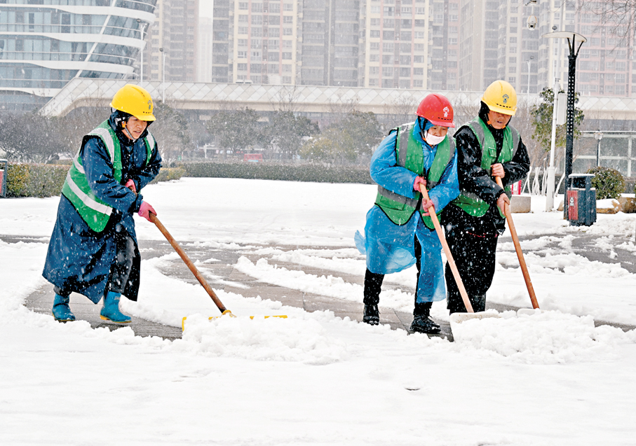 香港文匯報訊 綜合中新社及新華社報道,寒潮持續影響南方地區,中央氣象台20日6時發布寒潮藍色預警、冰凍黃色預警、大風藍色預警,寒潮繼續影響南方地區,湘黔桂贛等省份有雨雪冰凍。不少城市在過去兩天陸續迎來今年首場降雪。在「速凍」天氣中,城市保障崗位中堅守的身影,成為溫暖人心的剪影。