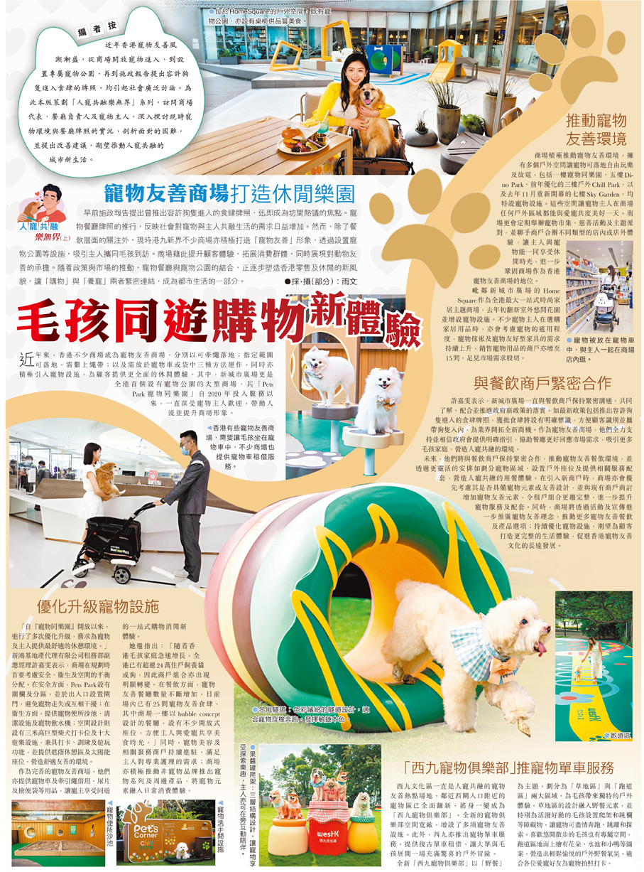 編者按 近年香港寵物友善風潮漸盛,從商場開放寵物進入,到設置專屬寵物公園,再到施政報告提出容許狗隻進入食肆的牌照,均引起社會廣泛討論。為此本版策劃「人寵共融樂無界」系列,訪問商場代表、餐廳負責人及寵物主人,深入探討現時寵物環境與餐廳牌照的實況,剖析面對的困難,並提出改善建議,期望推動人寵共融的城市新生活。