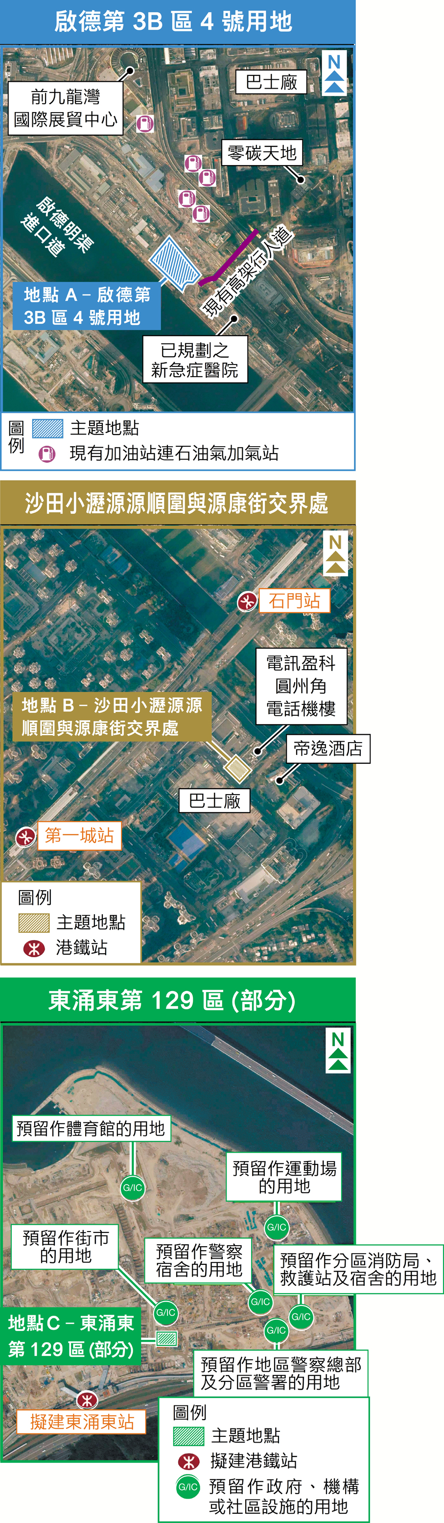 政府今次推出的三幅地分別位於啟德、東涌東及沙田小瀝源,面積介乎約0.11公頃至0.74公頃,可建最高樓面面積介乎1萬平方米至4.3萬平方米。香港文匯報記者昨日直擊其中兩幅地,啟德用地位處啟德發展區前南面停機坪區,鄰近啟德體育園,毗鄰今年啟用的新急症醫院,附近港鐵站包括啟德站和九龍灣站,交通配套完備,社區成熟,面積最大,相信最受關注。