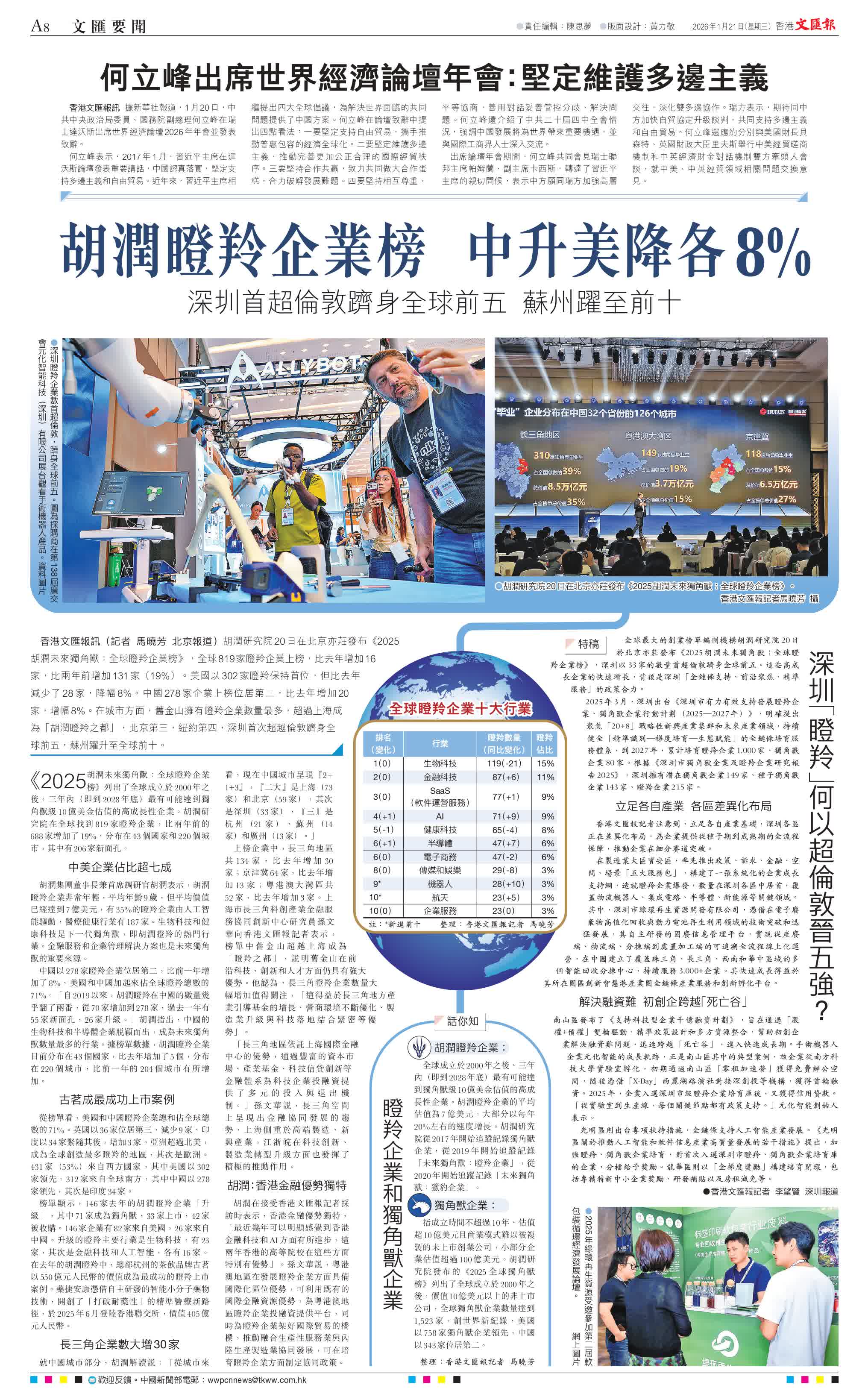 榜單顯示,146家去年的胡潤瞪羚企業「升級」,其中71家成為獨角獸,33家上市,42家被收購。146家企業有82家來自美國,26家來自中國。升級的瞪羚主要行業是生物科技,有23家,其次是金融科技和人工智能,各有16家。在去年的胡潤瞪羚中,總部杭州的茶飲品牌古茗以550億元人民幣的價值成為最成功的瞪羚上市案例。藥捷安康憑借自主研發的智能小分子藥物技術,開創了「打破耐藥性」的精準醫療新路徑,於2025年6月登陸香港聯交所,價值405億元人民幣。