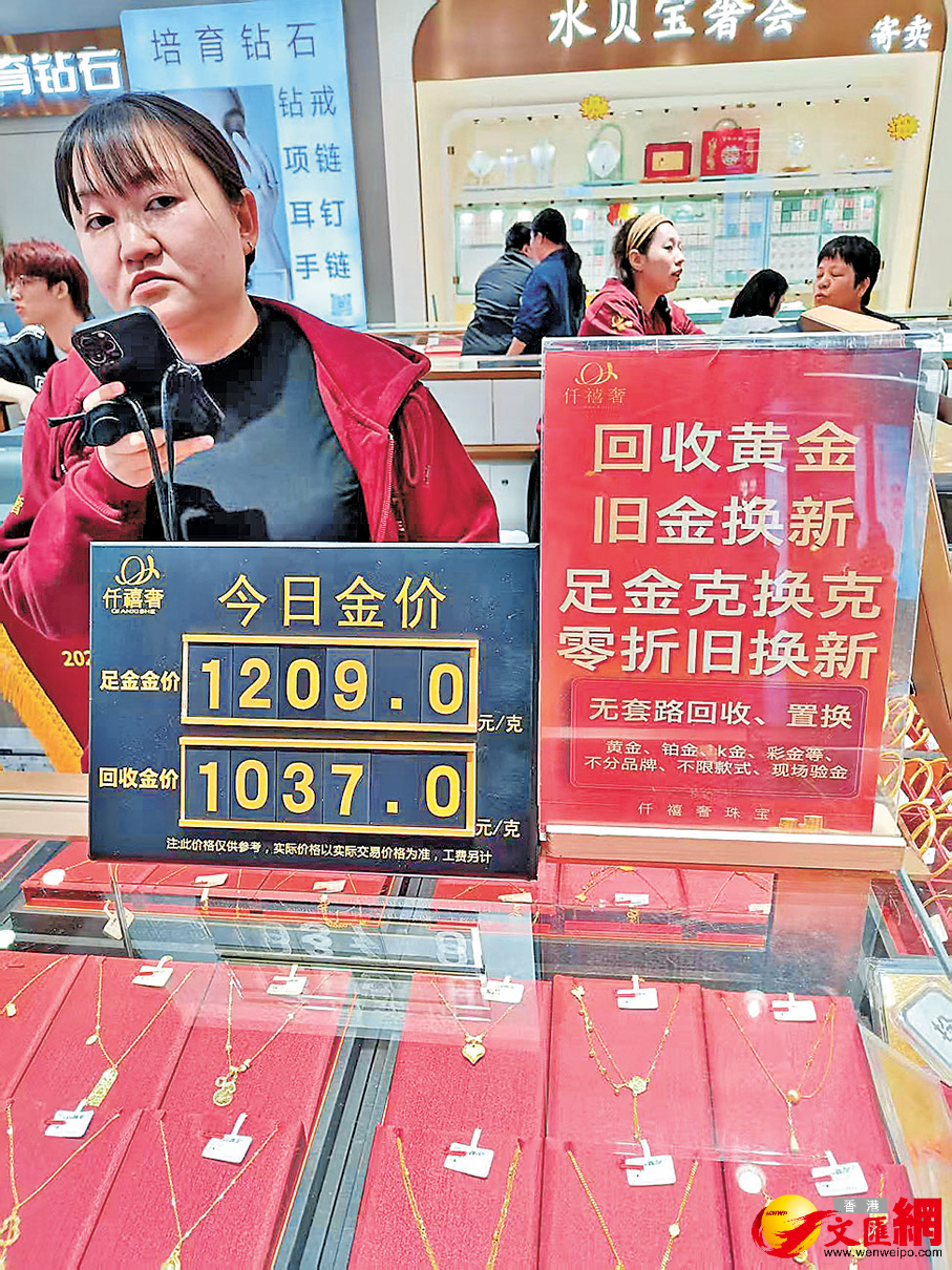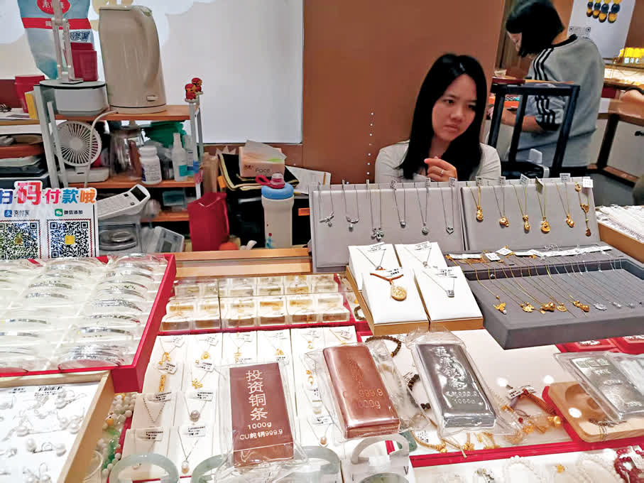 香港文匯報記者昨下午以顧客身份走訪深圳水貝黃金交易中心,一商家在銷售一公斤的銅條,每條一公斤198元,但不負責回收。該商家稱,很多投資者通過抖音、小紅書和現場找她購買,前一日銷售10多條,此前還有一天銷售數十條的情況。