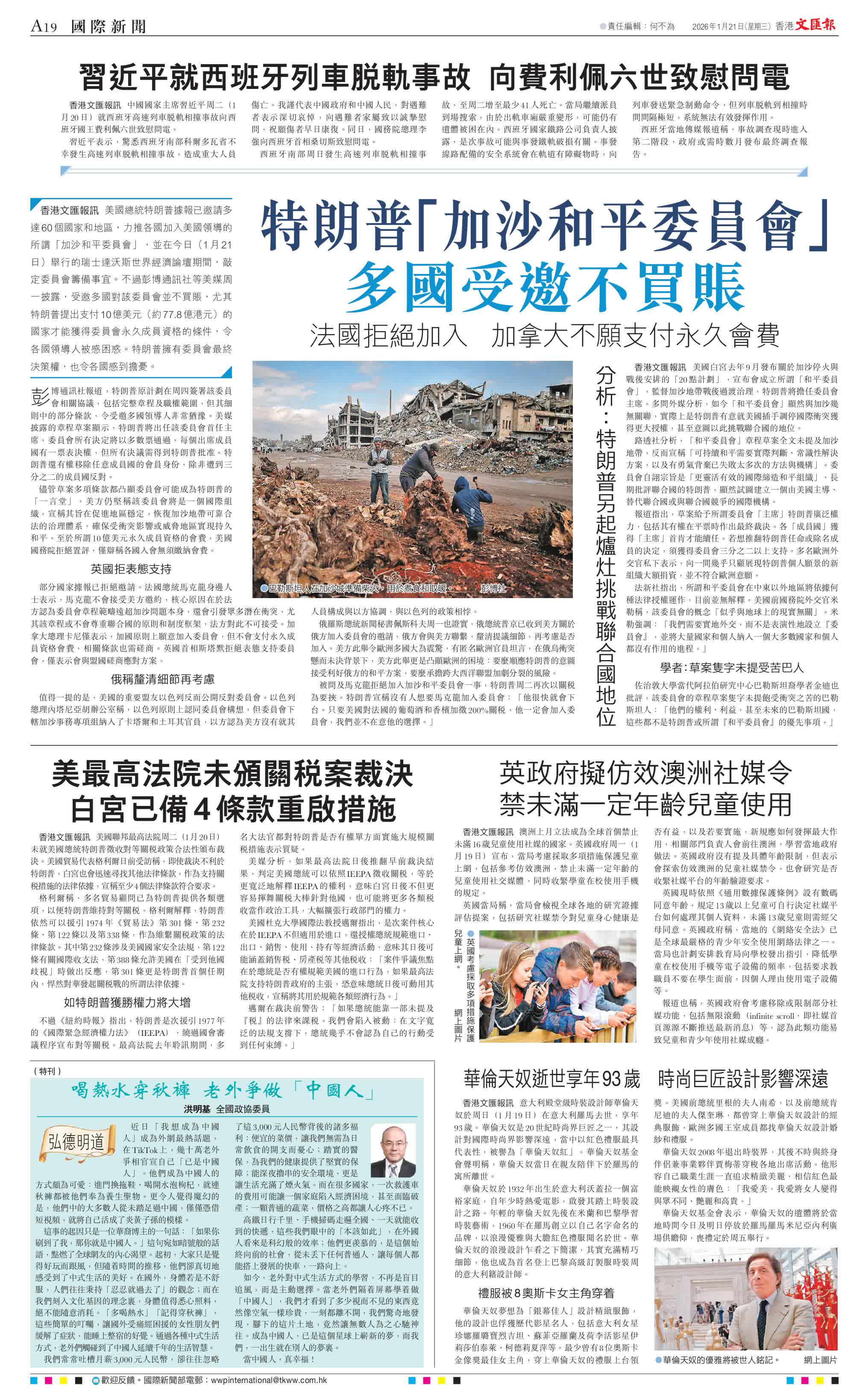 香港文匯報訊 美國總統特朗普據報已邀請多達60個國家和地區,力推各國加入美國領導的所謂「加沙和平委員會」,並在今日(1月21日)舉行的瑞士達沃斯世界經濟論壇期間,敲定委員會籌備事宜。不過彭博通訊社等美媒周一披露,受邀多國對該委員會並不買賬,尤其特朗普提出支付10億美元(約77.8億港元)的國家才能獲得委員會永久成員資格的條件,令各國領導人倍感困惑。特朗普擁有委員會最終決策權,也令各國感到擔憂。