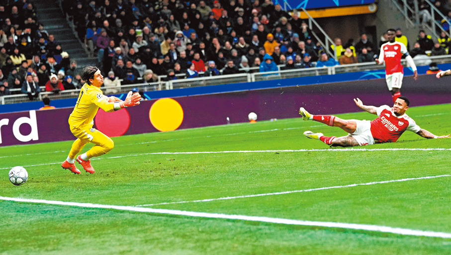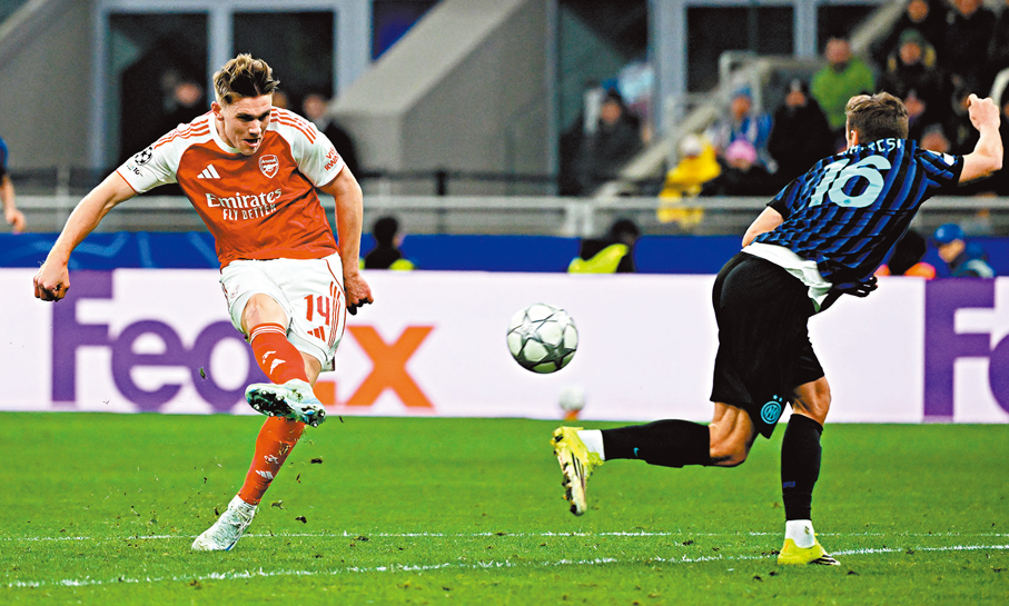 作客面對意甲「一哥」國際米蘭,阿仙奴令人意外地於初段已佔得上風,僅花了10分鐘便由加比爾捷西斯先開紀錄。如夢初醒的「國米」雖於八分鐘後由彼達蘇錫扳平,但「兵工廠」狀態明顯較佳,及後憑加比爾捷西斯攻入個人今場第二球,加上約基利斯在尾段入波,輕勝3:1完場,賽後以七戰全勝累積21分,成為首支直接晉級16強的球隊。至於落敗的「國米」賽後七戰得12分,跌落第九位附加賽區域。