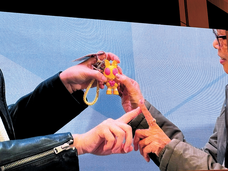 在潮玩遠遠不只是玩具的當下,潮玩相關產品在生活場景中的情感價值更為凸顯。梁文麗現場邀觀眾上台演示了一項設計中的巧思——當兩位朋友同時牽住公仔的左右兩隻手時,再用各自另外的一隻手相碰,公仔的眼睛就會「亮起來」並且發出十分具有活力的聲音。「這隻公仔在意的就是你想表達怎樣的情緒,」梁文麗介紹說,希望能通過這一設計鼓勵人與人之間的真實鏈接。