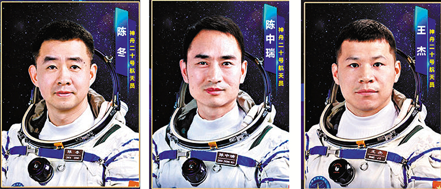 據介紹,去年4月24日,神舟二十號載人飛船成功發射,陳冬、陳中瑞、王傑順利進駐中國空間站天和核心艙,開展為期6個多月的在軌任務,於同年11月14日安全返回。