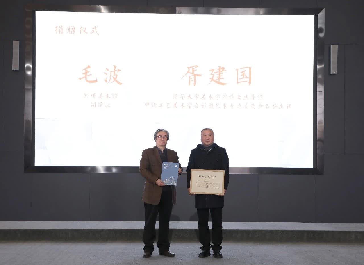 最後,胥建國教授將源自故土、成於匠心的部分珍貴作品慷慨捐贈予鄭州美術館,讓這份匠心與情懷得以永久珍藏、與公眾共享。鄭州美術館副館長毛波代表我館接受饋贈。