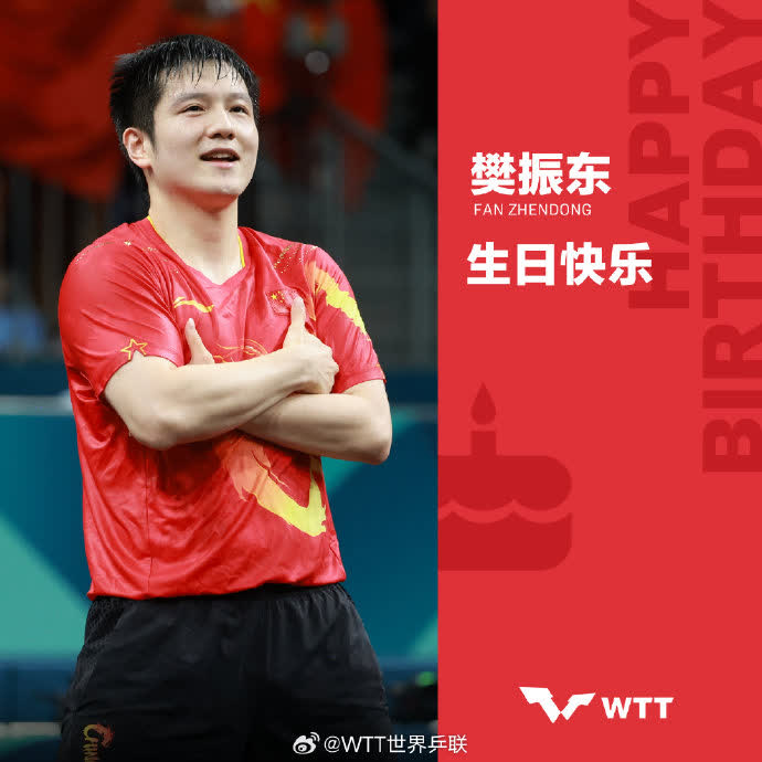 1月22日,樊振東迎來29歲生日。WTT世界乒聯發文祝樊振東生日快樂:「大滿貫加冕而熱愛不息,以實力立身,以沉穩致遠;願你新歲步履不停,再赴山海新程。」