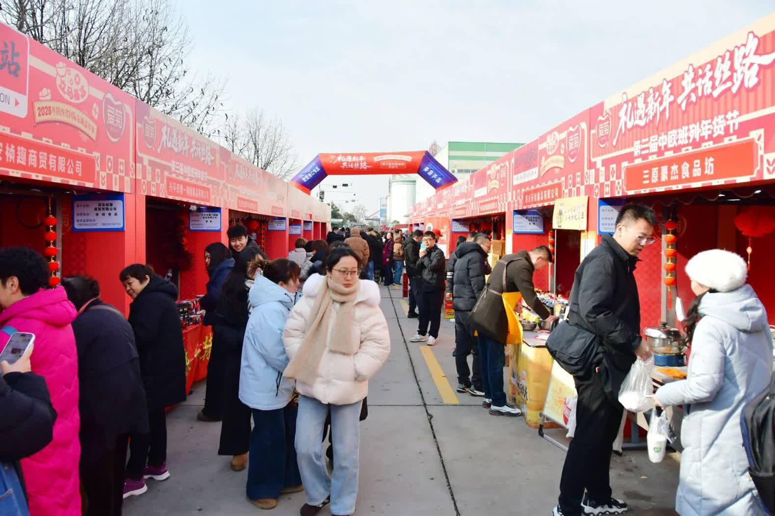當日的第三屆中歐班列年貨節啟動現場年味十足,在超過50個展位的「絲路好物集市」上,不僅「堆滿」了來自哈薩克斯坦、格魯吉亞等多個共建「一帶一路」國家的麵粉、啤酒、食用油、蜂蜜、紅酒、小食品特色商品,同時甑糕、油潑辣子等陝西特色美食亦讓人目不暇接。從優質的進口糧油、特色美食到精美的工藝品,在這裏市民可一站式購齊「絲路年貨」。