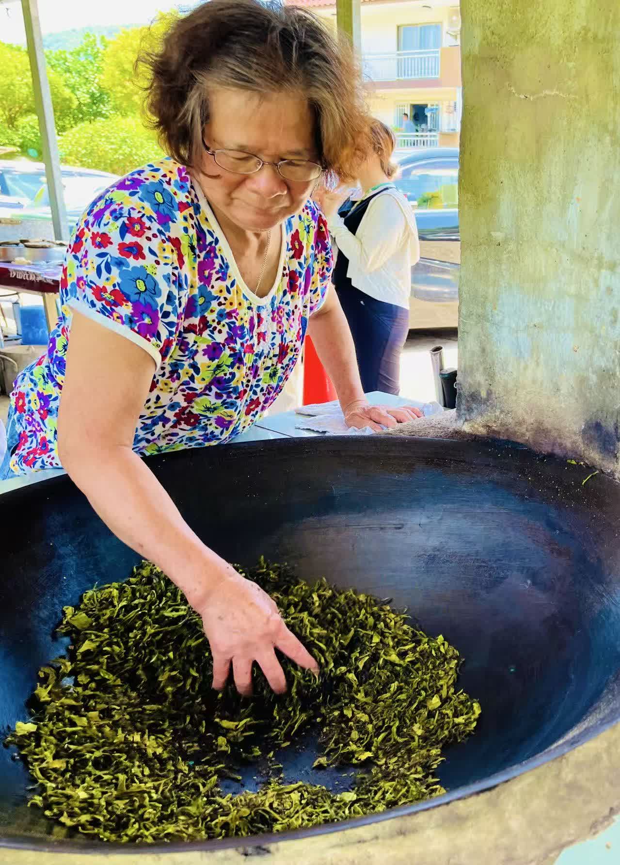 茂草岩有一處供村民及行山客沏茶歇腳或節慶歡聚吃盆菜的「禾坪」。每年「採青」季節,就是靜寂的村落最熱鬧之時。村民從山上採摘回來的茶葉嫩芽,青翠欲滴,放在柴火熊熊燃燒的大型鐵鍋上翻炒。令人驚嘆的是,一位叫洪英姐的村婦,雙手上下翻飛,翻弄茶葉,真正的純手工。她說整個製作過程的重點亦是難點,就是把握火候。稍有不慎,茶葉就焦糊了。過度「愛惜羽毛」,擔心手燙了,則茶葉的自然香淳「逼唔出來」。問為何不用鍋鏟或戴粗布手套?洪英姐說,「只有雙手最能感受炒茶的熱力和溫度」。