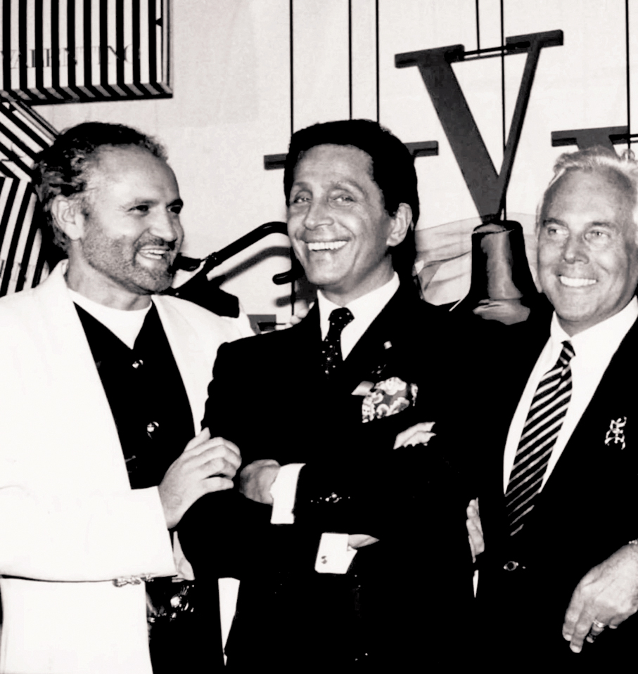 圖片顯示:左Versace,中Valentino,右Armani,只差Ferre,意大利時裝四大天王。如今4人同聚天堂,回望各自不同風格輝煌的往績,笑聲伴隨飲得杯落。