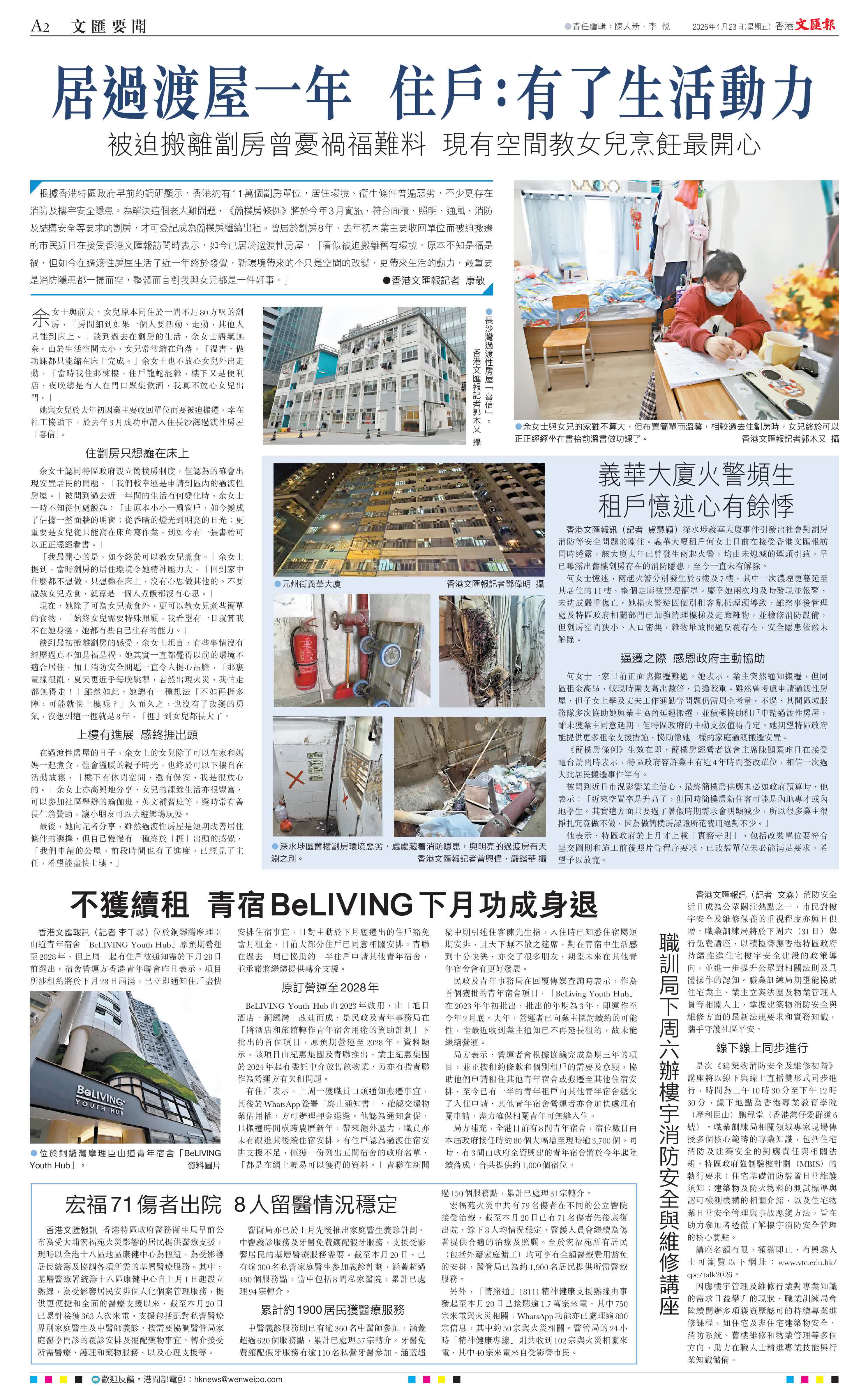 最後,她向記者分享,雖然過渡性房屋是短期改善居住條件的選擇,但自己慢慢有一種終於「捱」出頭的感覺,「我們申請的公屋,前段時間也有了進度,已經見了主任,希望能盡快上樓。」