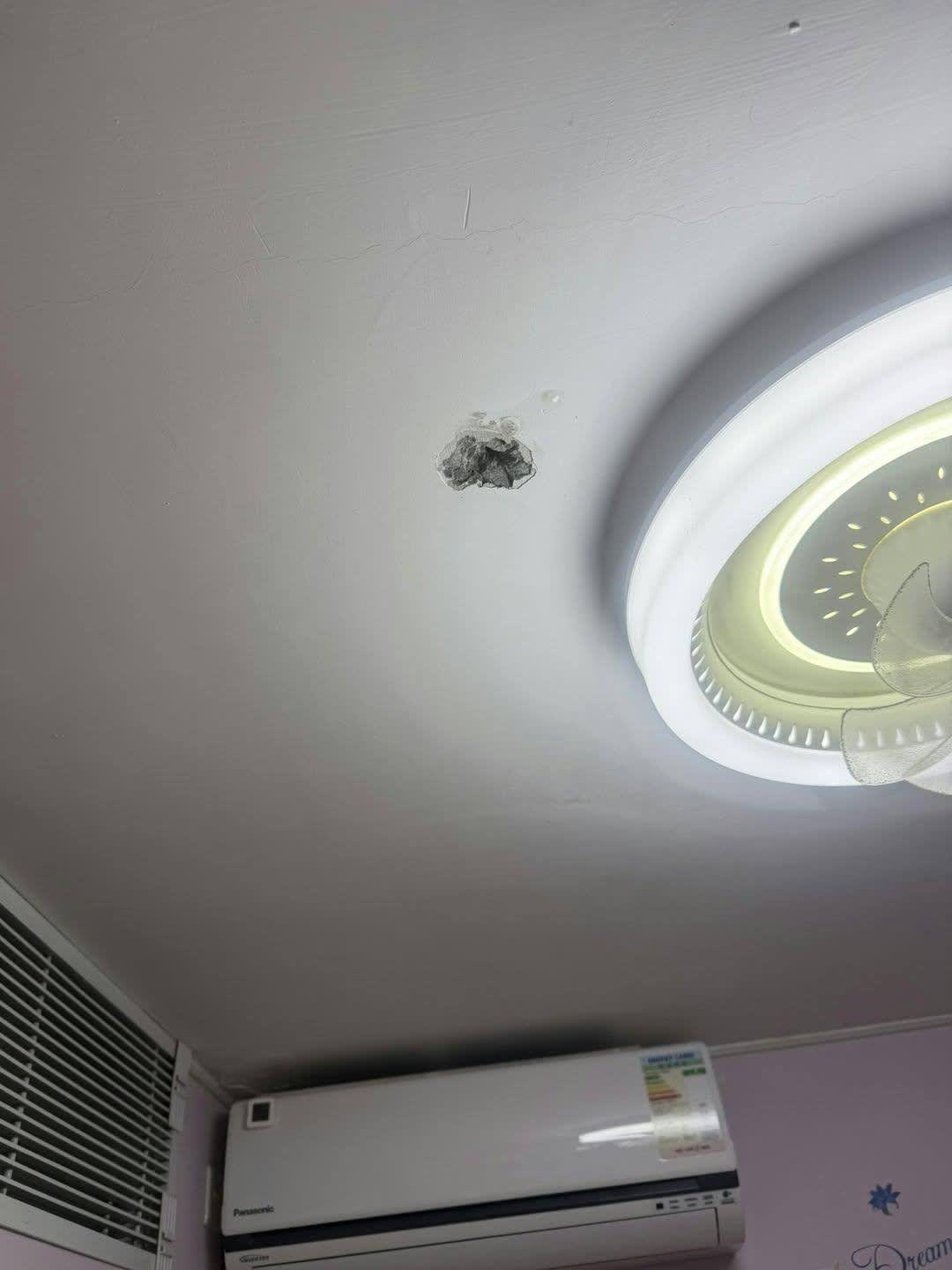 今日下午,案發後有人在facebook群組重提當日這宗案件,並上載兩張天花板損毁圖片,帖文指當日疑犯不單鑽穿天花板淋下一些臭水,據知相關液體為尿及煙灰水。