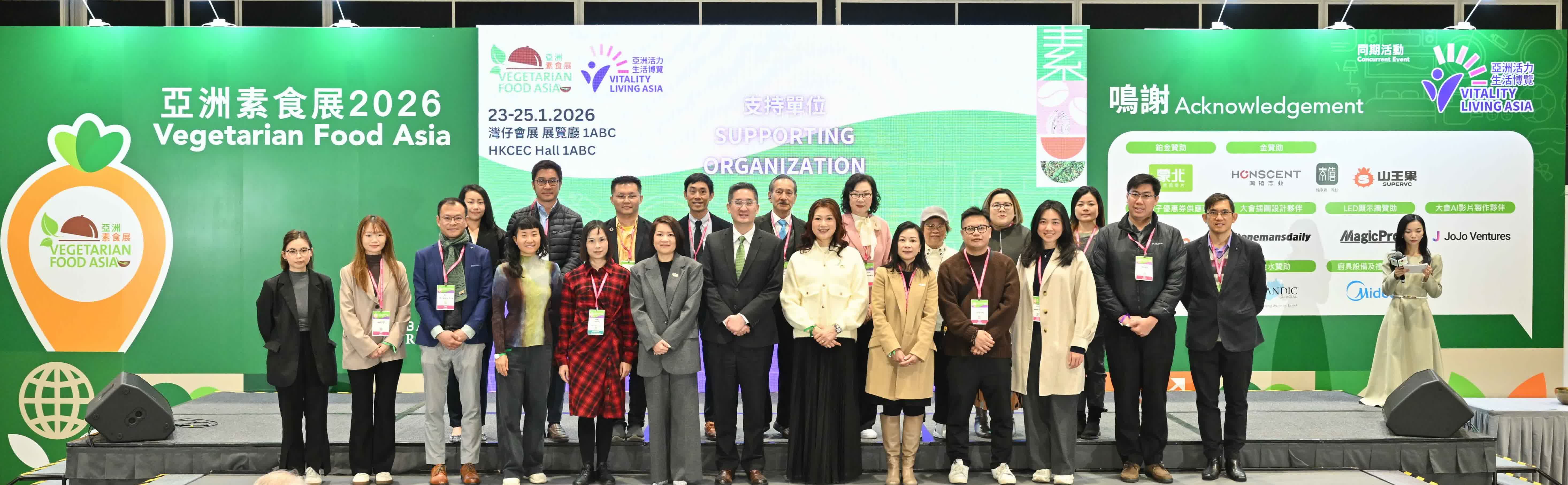 第十二屆「亞洲素食展」聯同首屆「亞洲活力生活博覽2026」今日(1月23日)於灣仔會展Hall 1ABC正式揭幕,首日已吸引大批市民入場參觀,場內多個展區人流暢旺,特色餐飲、素食產品試食、新興運動體驗及身心靈療癒活動均受到市民關注,為一連三日的全方位健康生活盛會打響頭炮,觀眾及業界人士對新產品、新技術及創新飲食方案表現出高度興趣。同時,論壇及商貿配對活動氣氛熱烈,企業代表與買家進行深入交流,現場洽談積極活躍,反映出亞洲健康、植物基及活力生活產業的強大商業潛力。
