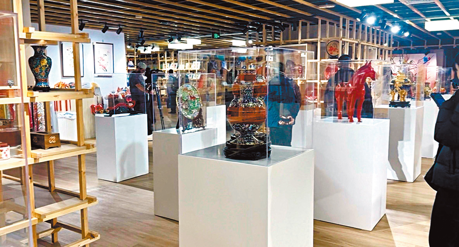 金陵摺扇、竹編藝包、螺鈿飾品……在王府井工美大廈四層,「予尋京喜」——藝術非遺「中國禮物」旗艦店將各式各樣精巧雅緻的非遺藝術品呈現在遊客眼前。這家面向青年群體的新消費門店,創新性地整合了非遺手作體驗、展覽快閃、茶咖休憩、智慧零售四大業態,為遊客營造了一個集「逛、玩、買」於一體的沉浸式藝術非遺文化體驗空間。
